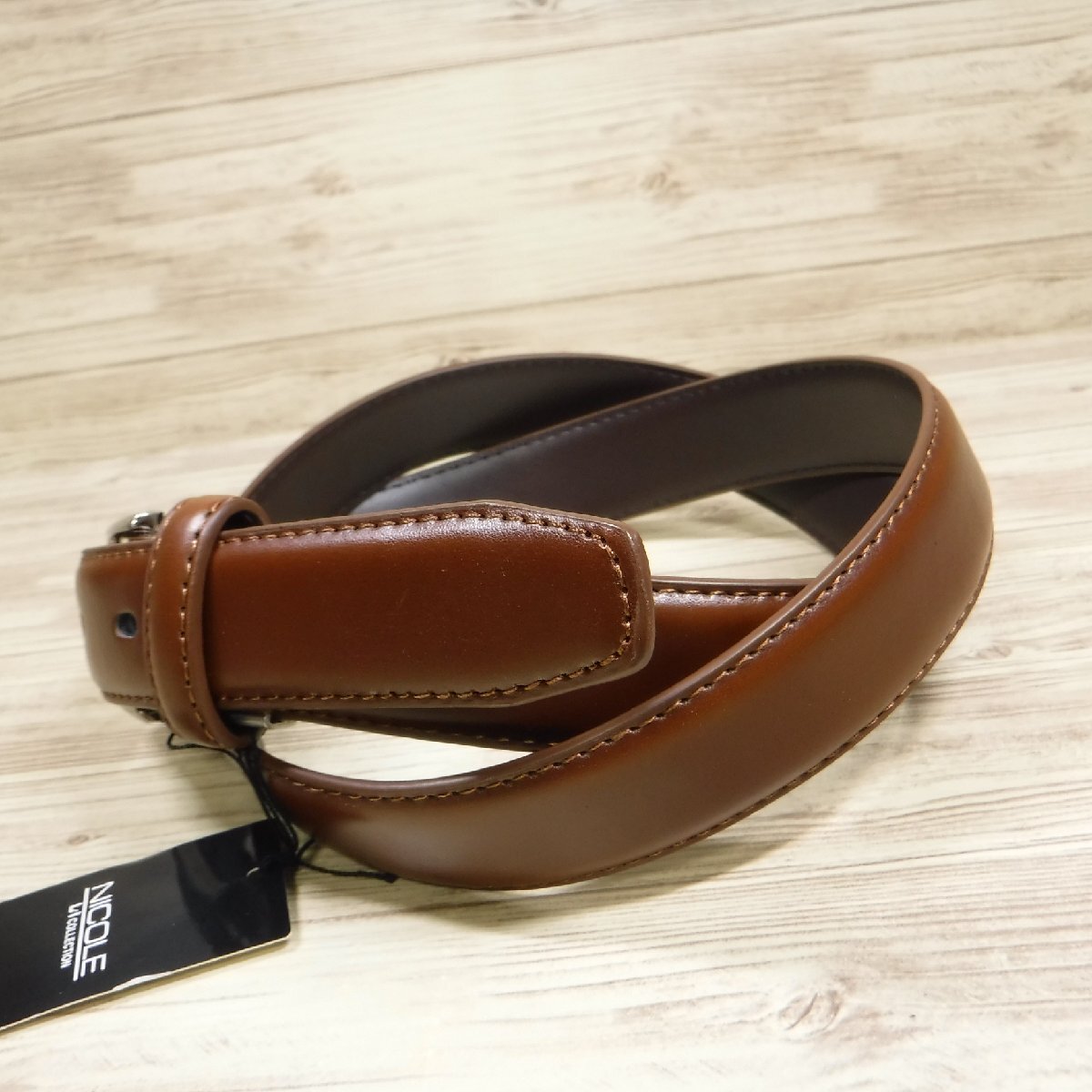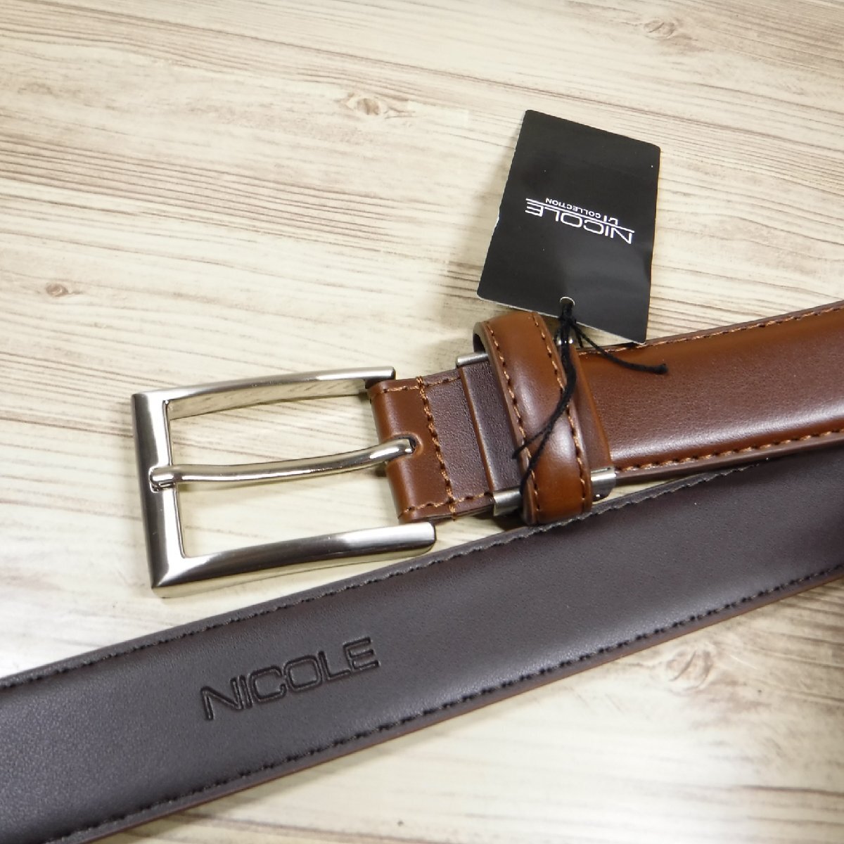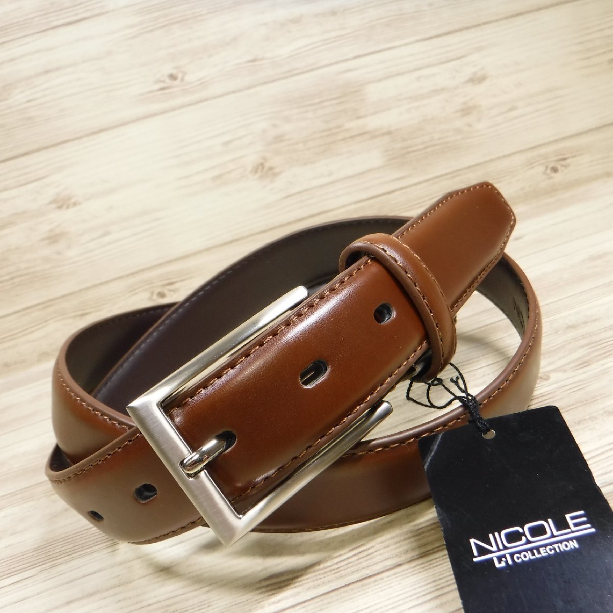 V376 ニコル NICOLE 新品 茶 牛革レザーベルト ブラウン ビジネスベルト カジュアル オンオフ兼用 ムッシュニコル ニコルクラブフォーメン