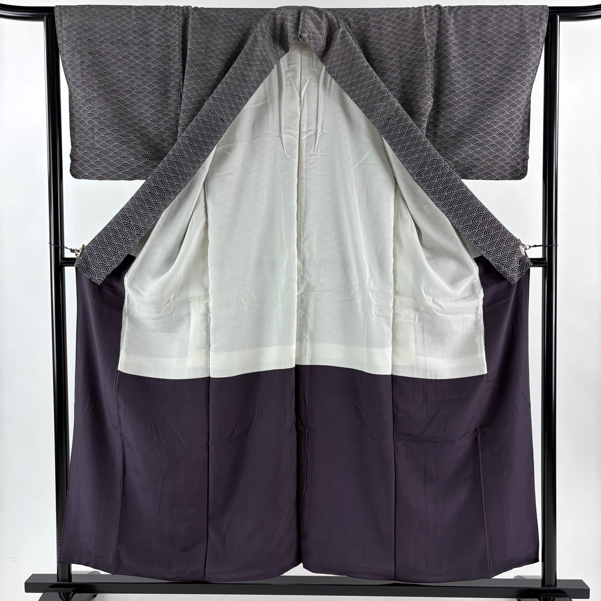 | 付下げ 美品 優品 青海波 黒灰 袷 身丈155.5 裄丈64 M 正絹 【中古】 |