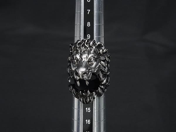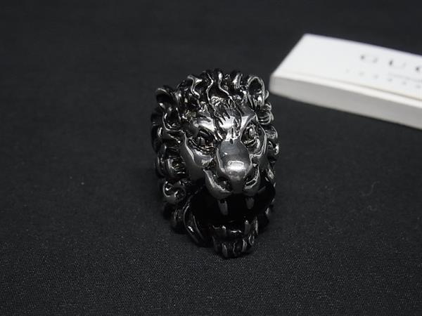 1円 ■美品■ GUCCI グッチ ライオンヘッド カラーストーン リング 指輪 アクセサリー サイズ13 (約12号) シルバー系×ブラック系 BP6444