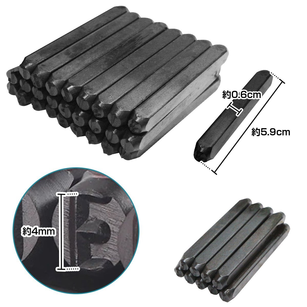 【送料無料】[ 4mm ] 数字+アルファベット 打刻印セット 36本 打刻 ポンチ レザークラフト アルミ 真鍮 銅 金属 DIY 英字 ナンバー 36pcs