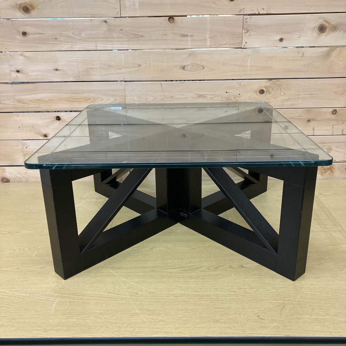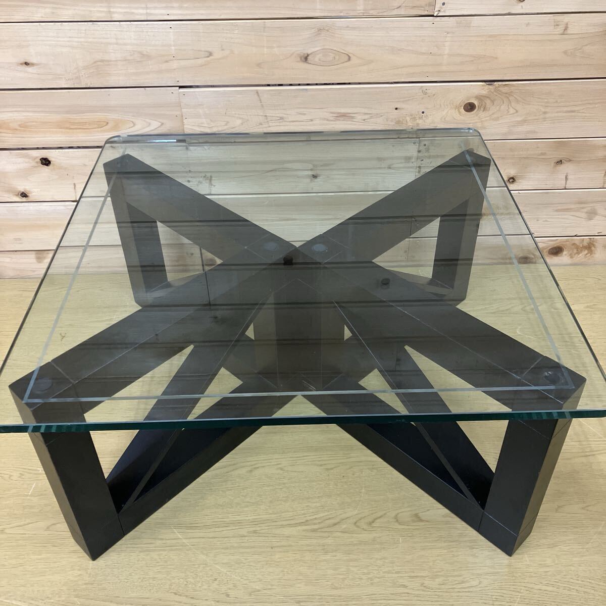 アンティーク家具 マルニ木工 ガラステーブル リビングテーブル ローテーブル 座卓 応接 リビング モダン 幅72cm