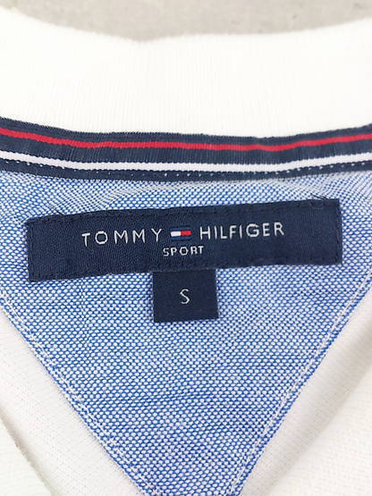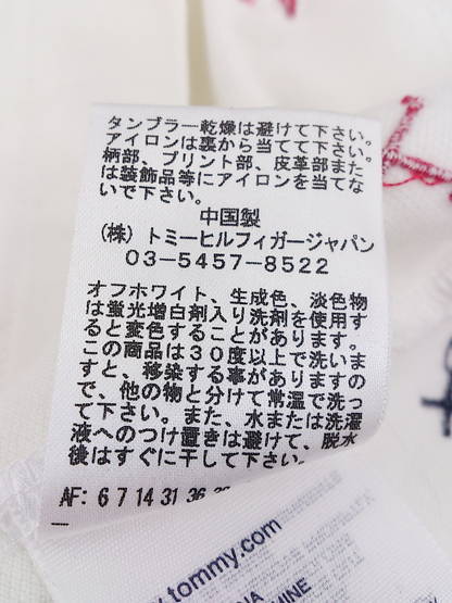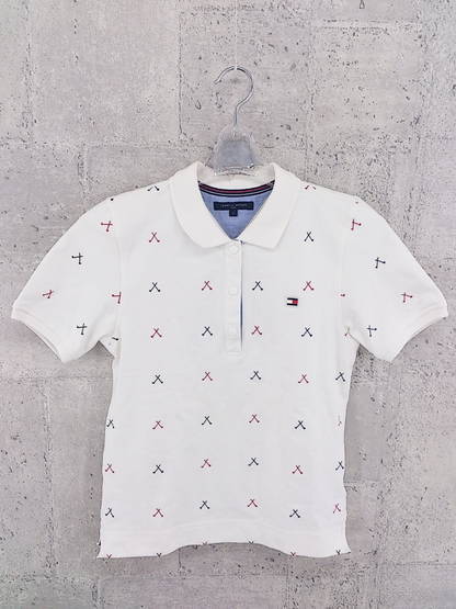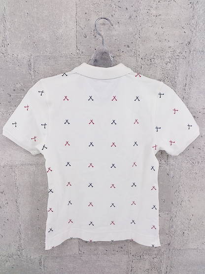 ◇ TOMMY HILFIGER トミーヒルフィガー 総柄 半袖 ポロシャツ S ホワイト ネイビー レッド *