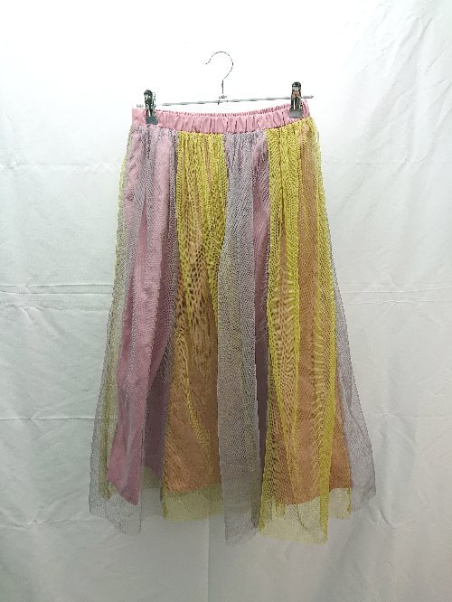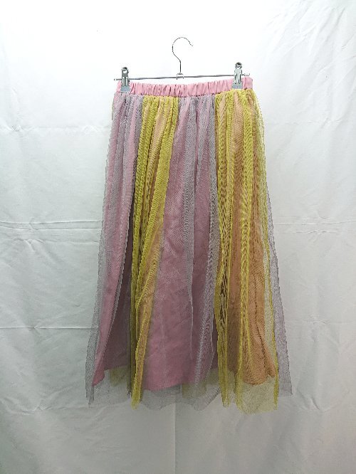 ◇ POU DOU DOU プードゥドゥ ウエストゴム レース 裏地 シンプル ひざ丈 フレア スカート サイズM マルチ系 レディース E