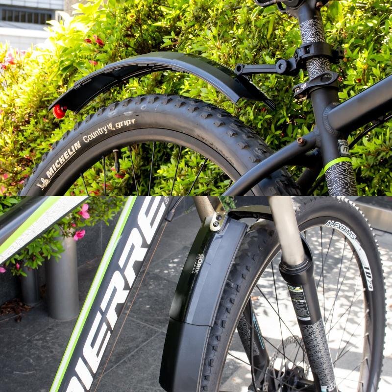 | 雨などの悪天候や路面がウェットの時に前輪や後輪から跳ね上げられる泥、雨水をお尻や背中にかかるのを防ぐアイテムです。 制服やスーツでの自転車通勤や自転車通学には是非装着したい泥除けです。 衣服やリュックを汚さず雨上がりでも安心して乗れるようになりますね。 梅雨の季節で最も活躍するフェンダー。 幅広いのでタイヤの太いMTBマウンテンバイクに最適な自転車用泥よけです。 ※ジャンク品の為、正常に動作しない場合や修理が必要な場合等ございます。キズ、汚れ、破損、付属品が足りない等ある場合がございます。ノークレーム、ノーリターン | |