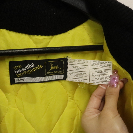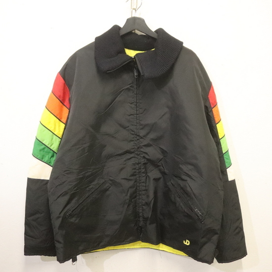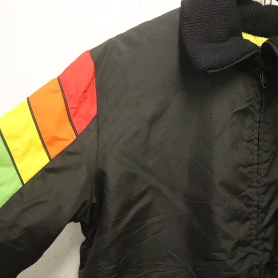 商品名 B136 80sビンテージ JOHNDEERE 中綿 ナイロンジャケット■1980年代製 XLサイズくらい 黒 ブラック ブルゾン アメカジ ストリート 古着 激安