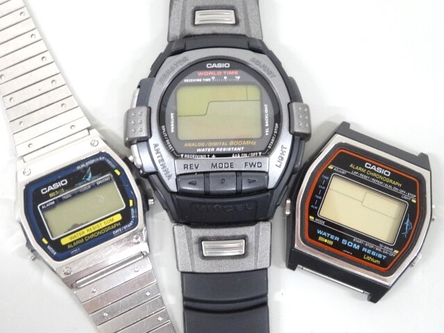 【ジャンク 3点セット まとめて】 CASIO カシオ アラームクロノグラフ W-23・WS-70 WORLD TIME VCL-100 | |||||||||||