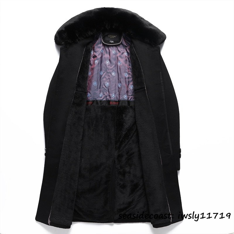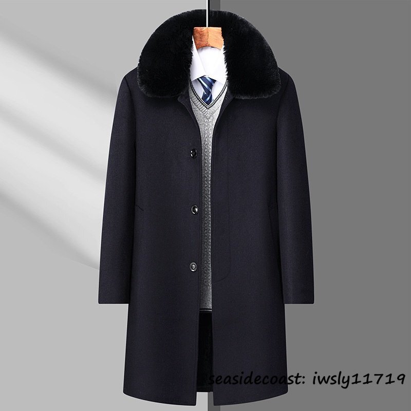 冬新品★メンズ ウールコート 裏起毛 ビジネスコート 厚手 超防寒 高級*WOOL ロングコート 紳士スーツ 超希少 ファーコート ネイビー 5XL