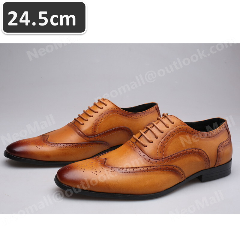お洒落な メンズ ビジネス レザー シューズ ライトブラウン サイズ 24.5cm 革靴 靴 カジュアル 屈曲性 通勤 軽量 インポート品【n016】