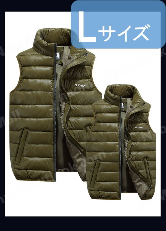 シンプルな メンズ ダウンベスト 995 グリーン Lサイズ 中綿ダウン 中綿ベスト キルティング アウター 防寒 秋冬 暖かい