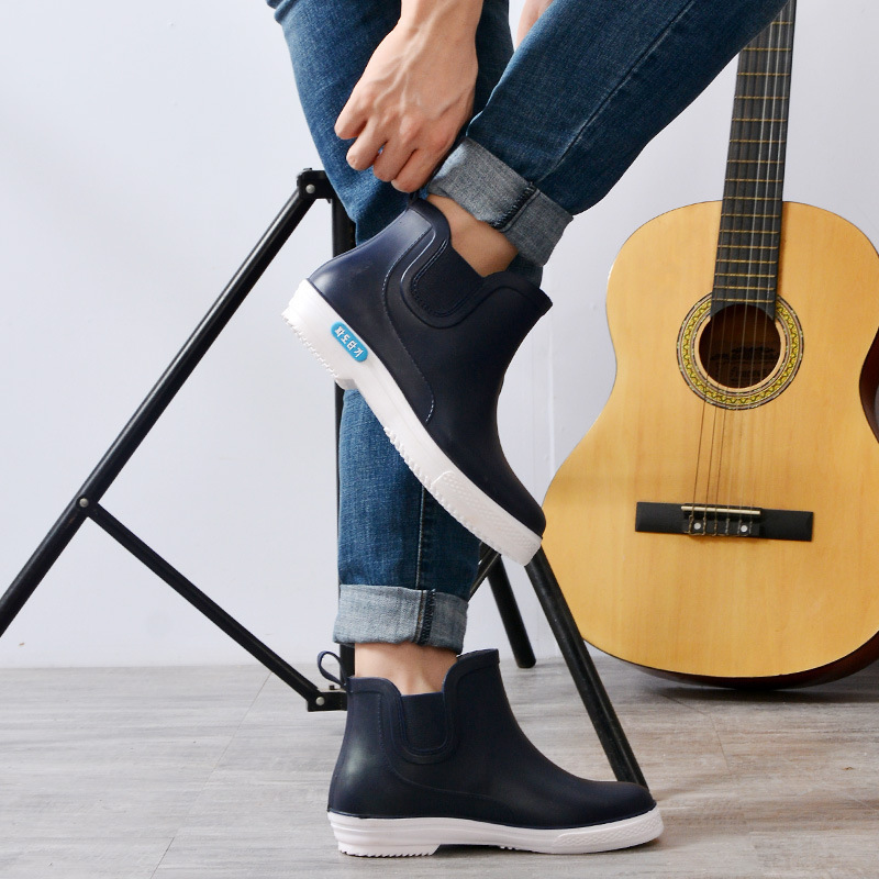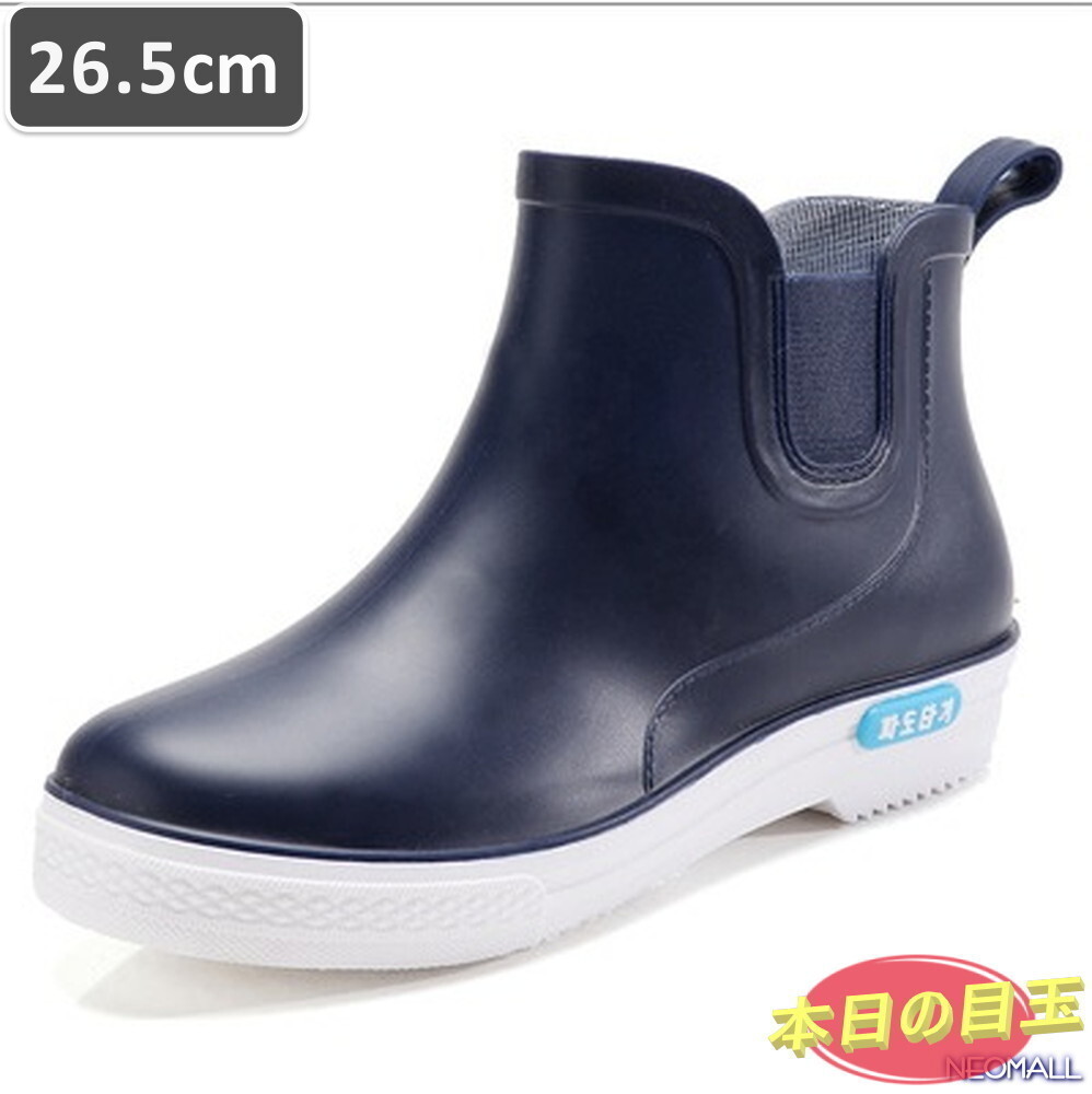 1スタ ☆【486】メンズ レインシューズ ネイビー×ホワイト 26.5cm オシャレ ショートブーツ シンプル 梅雨 雨 長靴 雨靴 防水