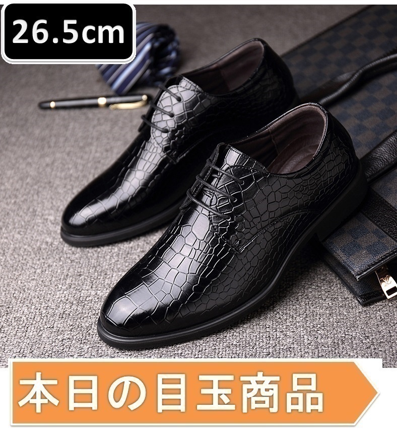 本日の目玉 ☆ メンズ ビジネス レザー シューズ ブラック サイズ 26.5cm 革靴 靴 カジュアル 屈曲性 通勤 軽量 【224】