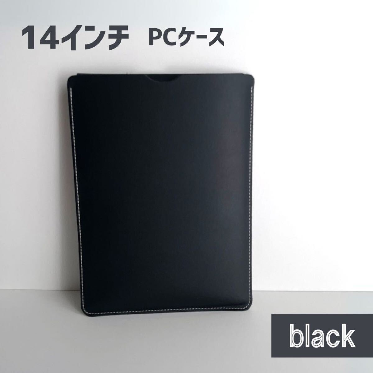 PCケース 14インチ レザー調 MacBook スリム カバー 黒 ブラック ノートPC