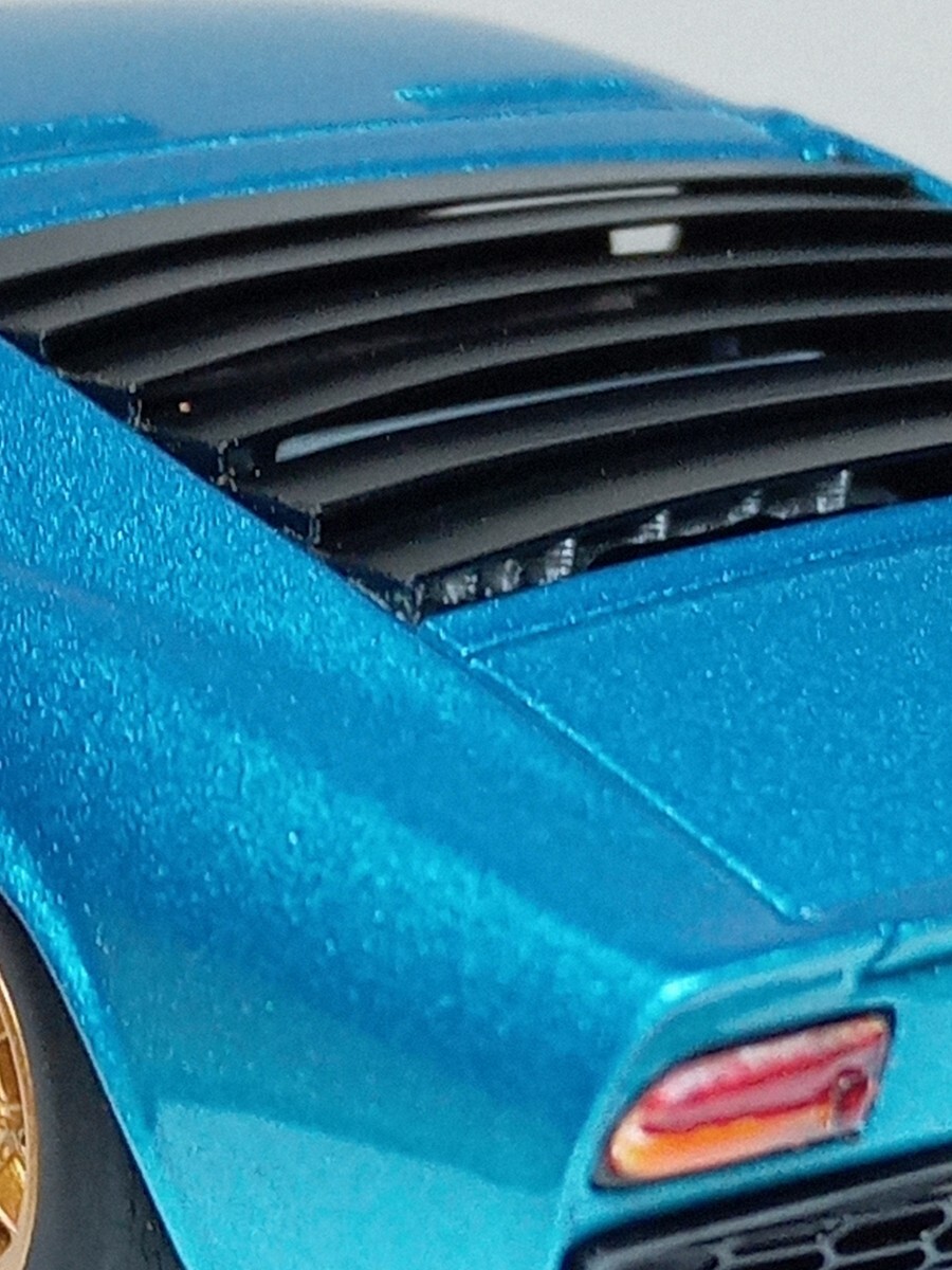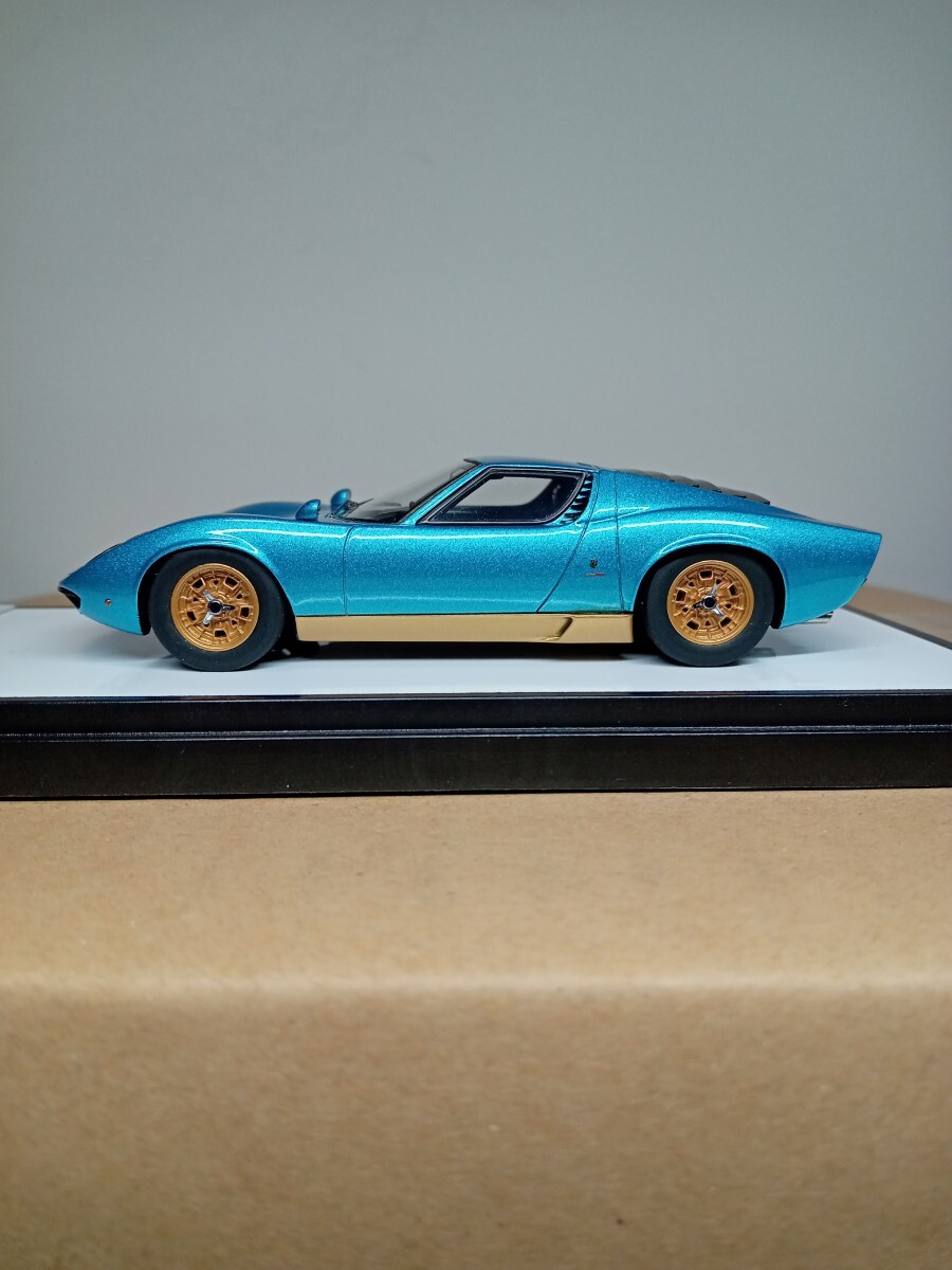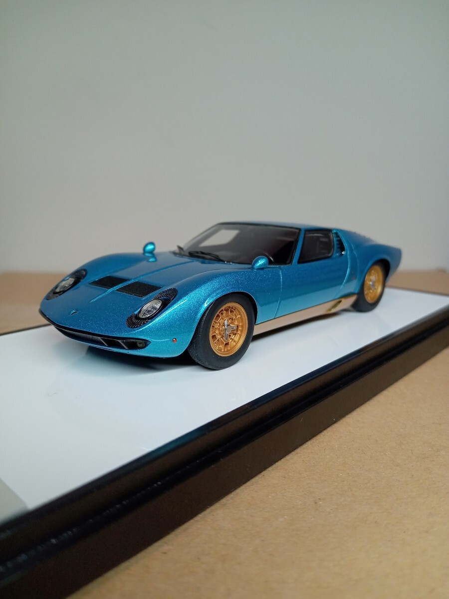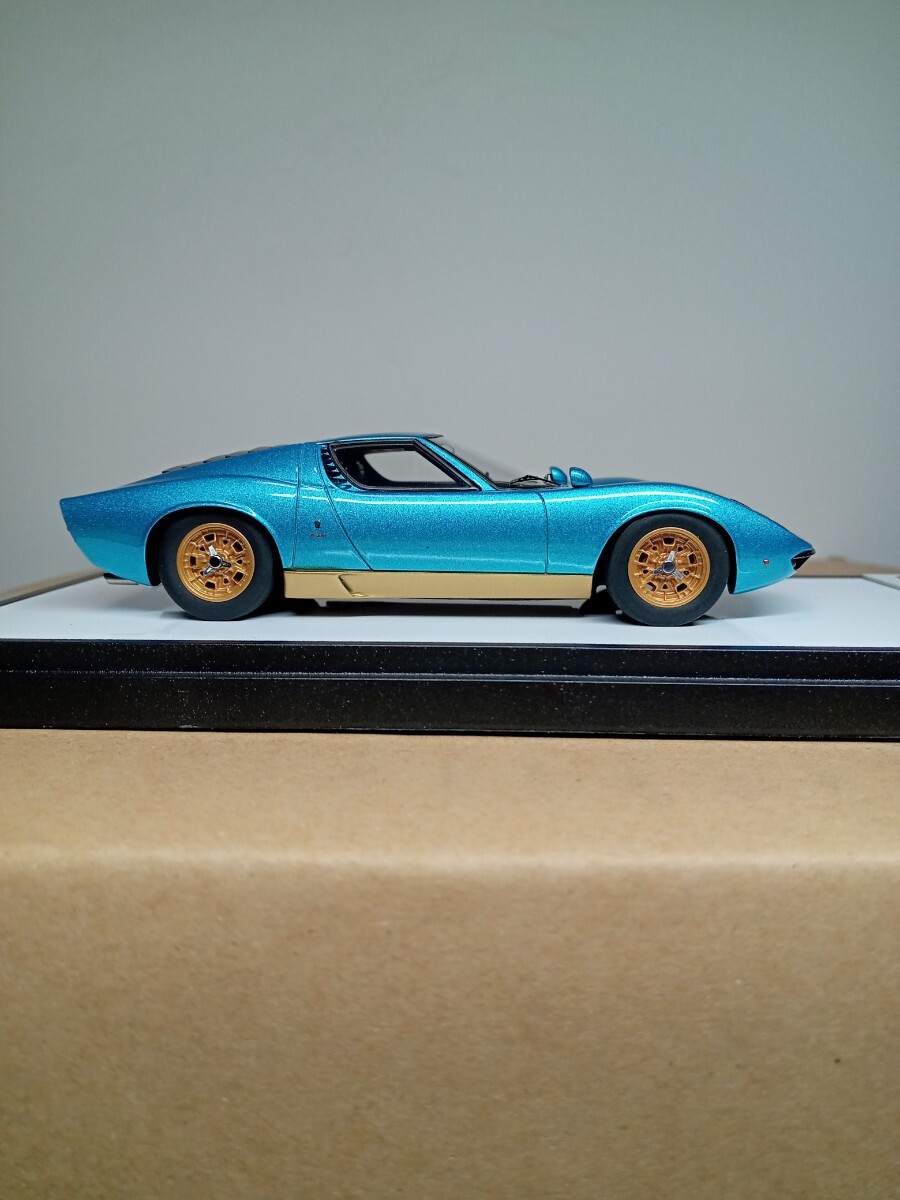 とても美しいメタリックのアルテミスグリーンの外観にゴールドのホイールがめちゃくちゃ格好良い仕上がりのモデルです、またリヤのルーバーの隙間から精密なエンジンが見えます、人気の初期モデルのP400のミウラですので、ランボルギーニファンの方に是非ともコレクションに加えて頂けたらと思います。