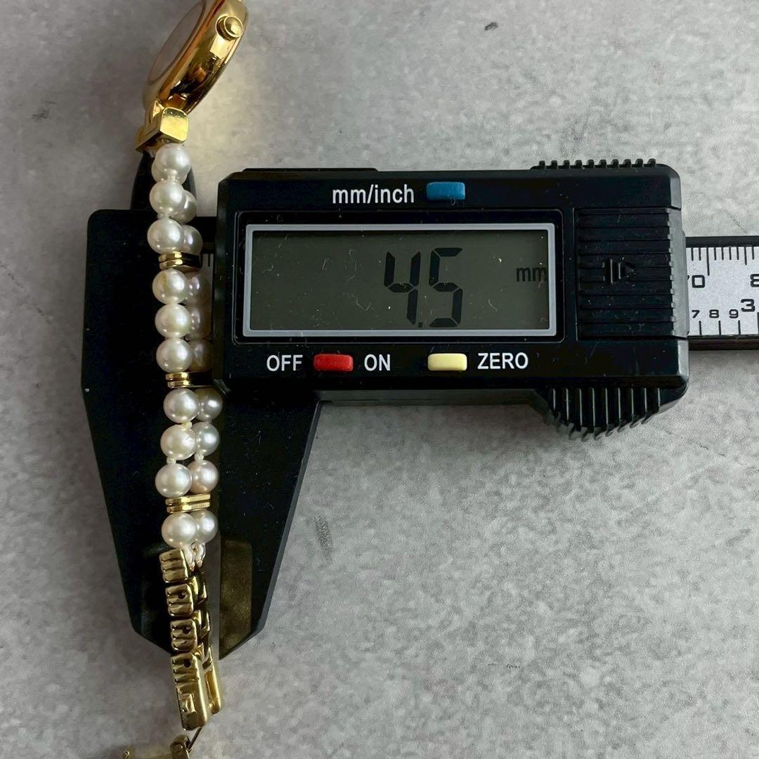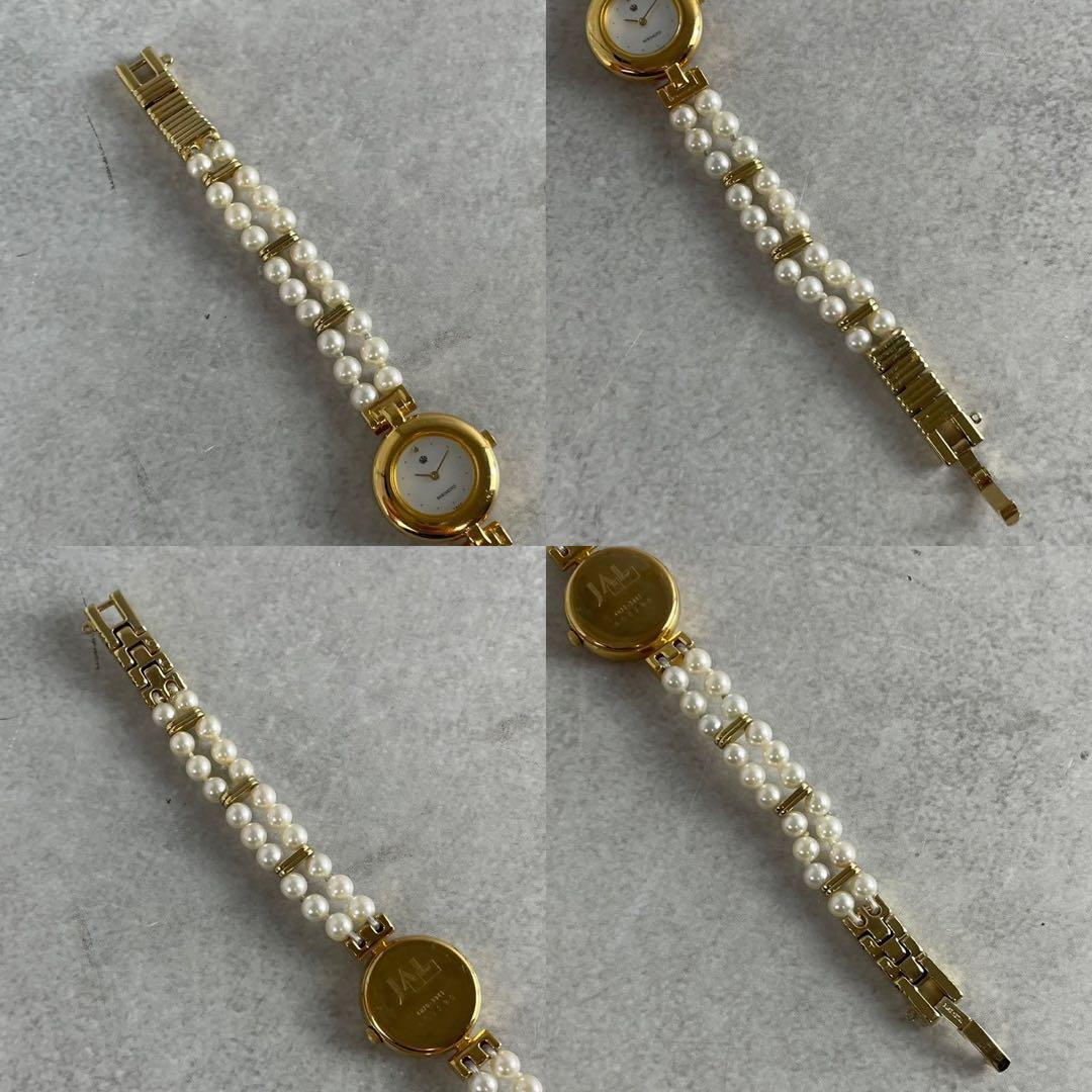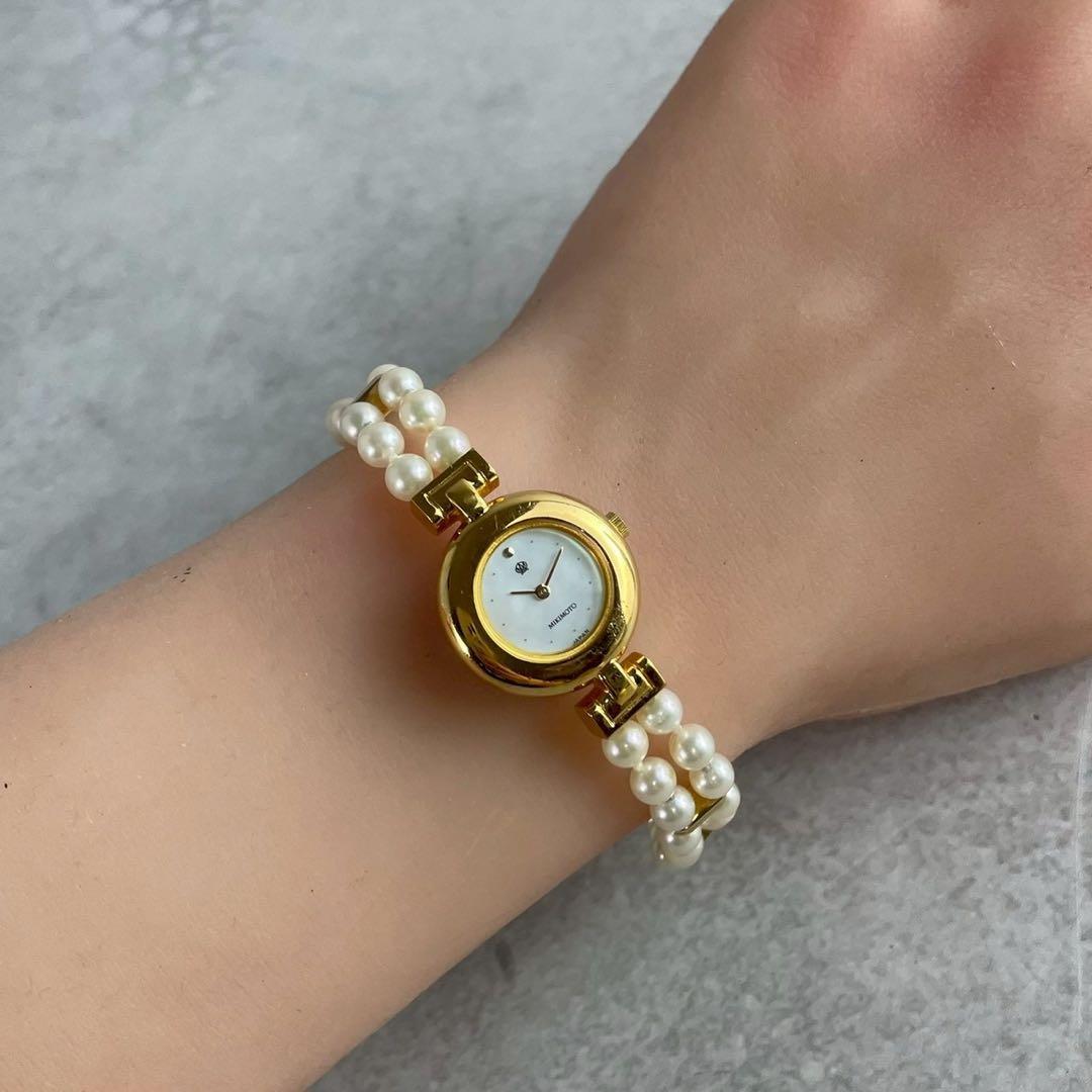 2連の本真珠のブレスレットがエレガントに手元を彩る、ジュエリー感あふれる上品なモデル。