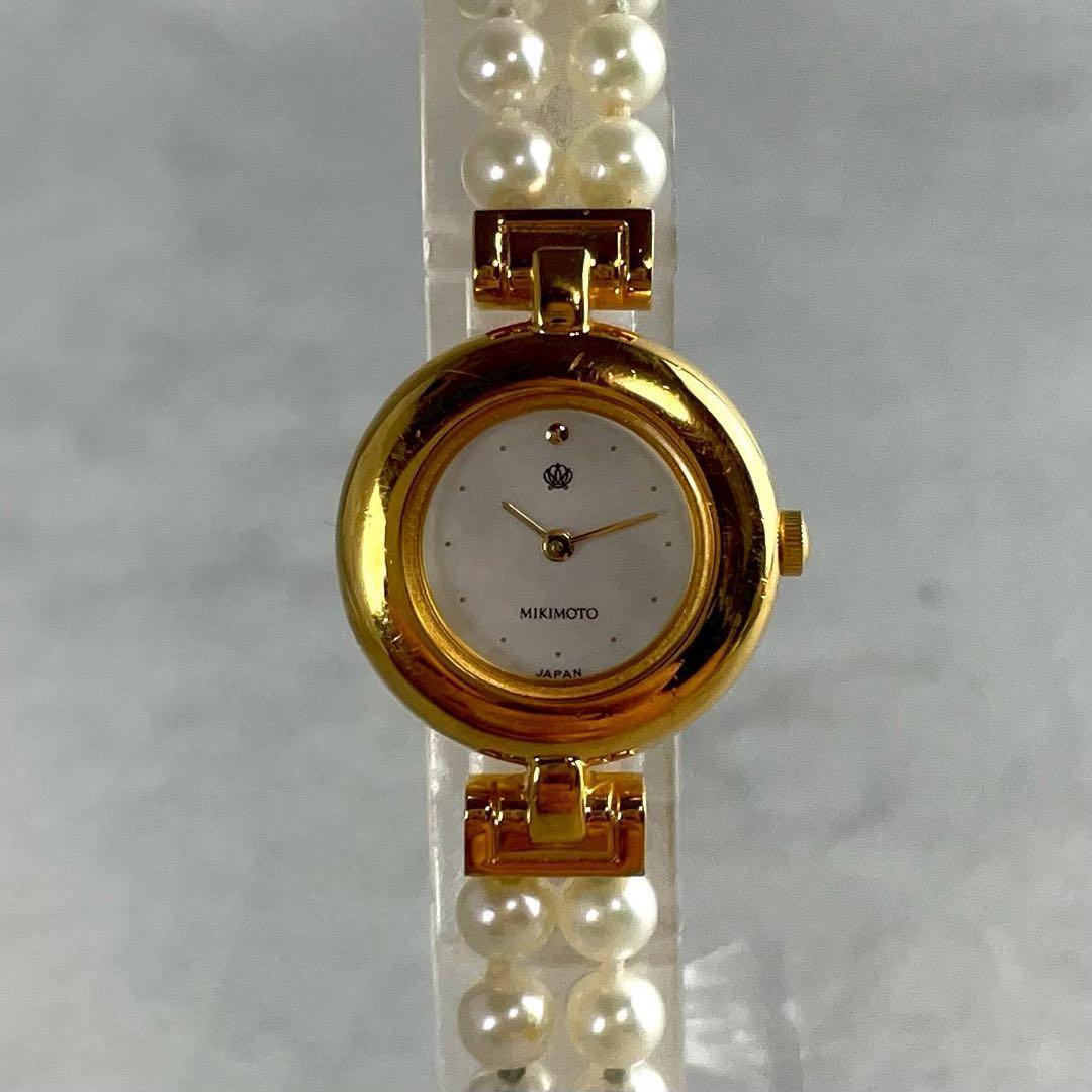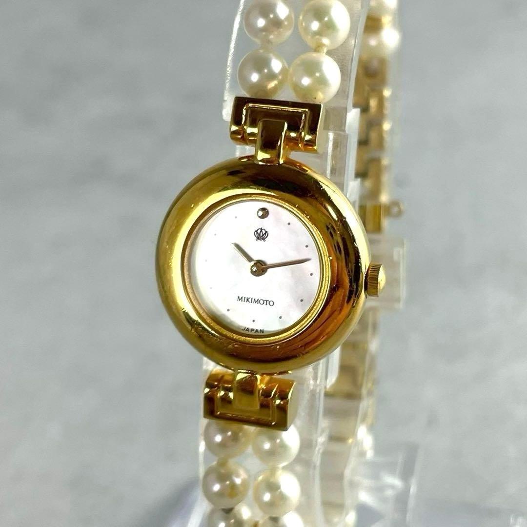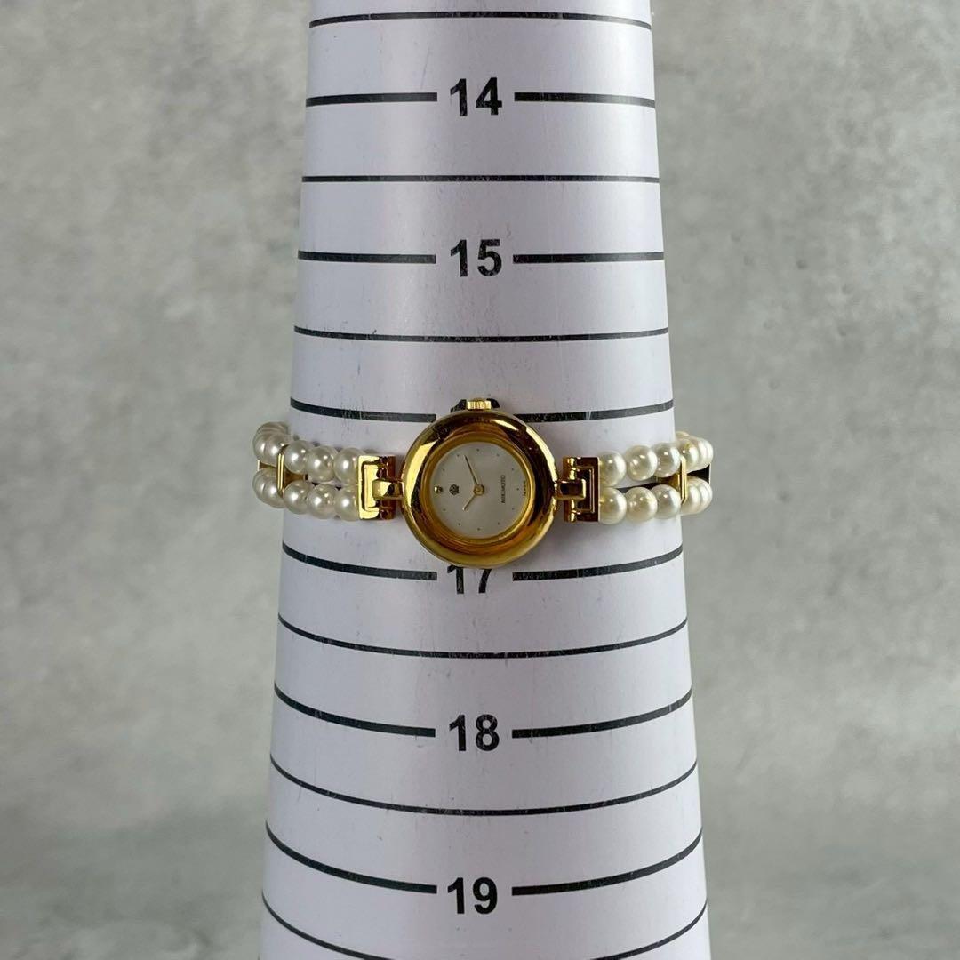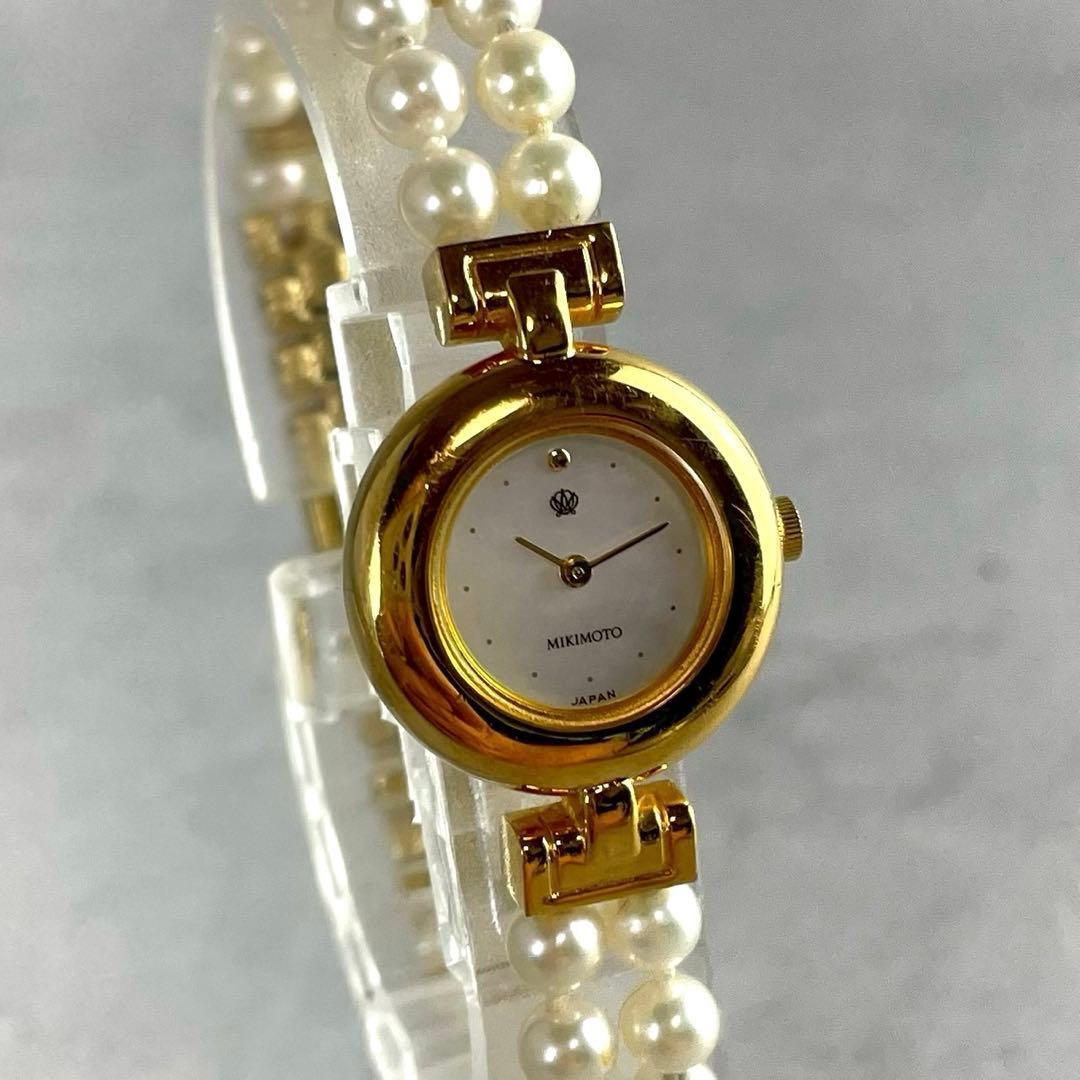 2連の本真珠のブレスレットがエレガントに手元を彩る、ジュエリー感あふれる上品なモデル。
