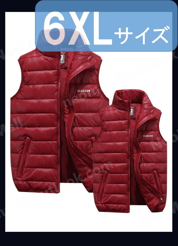 シンプルな メンズ ダウンベスト 995 レッド 6XLサイズ 中綿ダウン 中綿ベスト キルティング アウター 防寒 秋冬 暖かい
