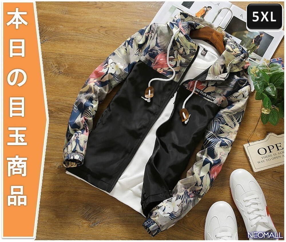 本日の目玉 【297】 ウィンドブレーカー フード付き ブラック 5XL メンズ ナイロン カモフラ 柄 アウトドア 防風 軽量 ジャケット