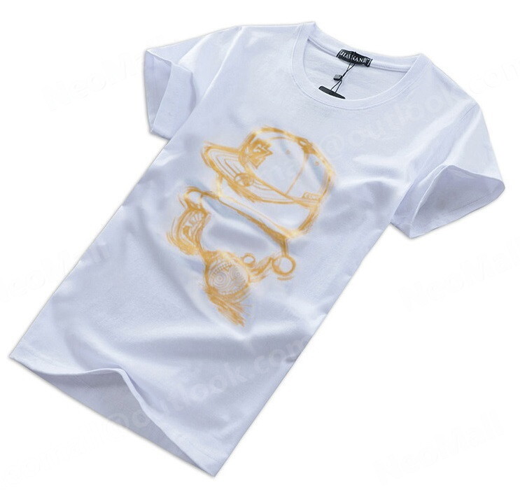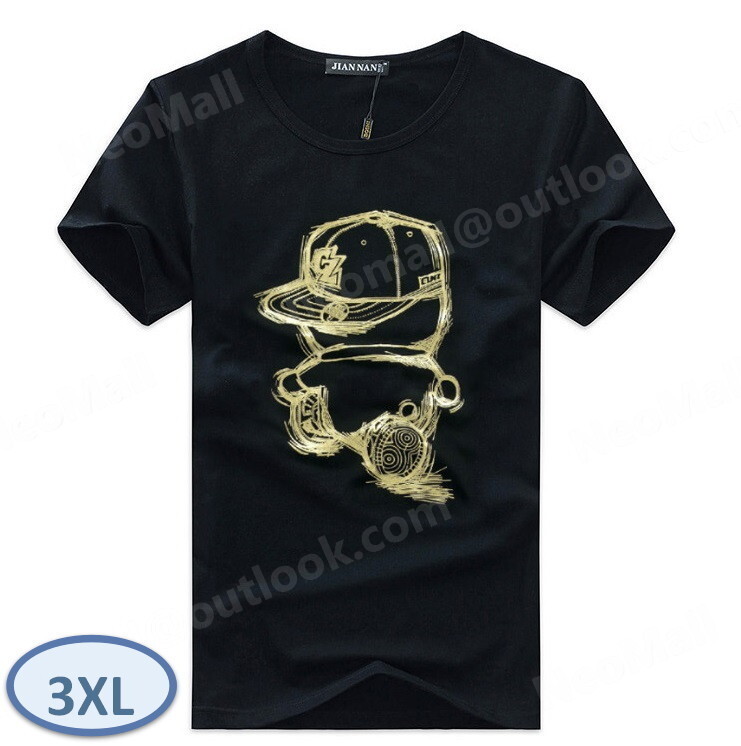 夏にピッタリ ☆ 丸首 半袖 Tシャツ【070】 ブラック 3XLサイズ トップス シャツ シンプル イラスト プリント 春夏