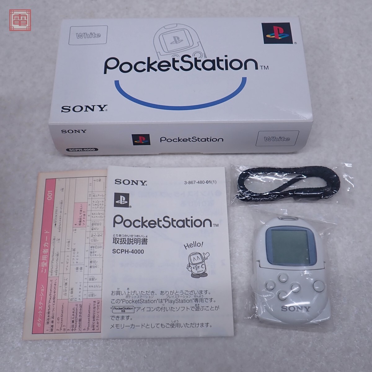 未使用 PS プレステ ポケットステーション POCKET STATION SCPH-4000 ホワイト ソニー SONY 箱説付 ■未使用と判断しましたので、未チェックのままお譲りします。万が一、使用済み品であった場合はご容赦ください。 ■こちらの商品は未使用のままでお譲りいたします。 ■未使用品は未使用である事に価値があるため使用後のクレームや返品に応じる事は出来ません。 ■箱にスレ、キズ、汚れ、へこみがあります。 ■取扱説明書に汚れ、ヤケがあります。 ■写真のものが全てです。付属物の有無や状態については写真からご判断ください。 ■付属物については細かいチェックはしておりませんので、万が一、欠品があったり余計な物が入っていたとしてもご了承ください。 ■商品到着後、当店の保証期間中は、商品及び箱や取説、付属品などを1つでも廃棄や破損をしないようにお願い致します。廃棄や破損をした場合、商品に問題があった場合でも対応や返金などの対処ができなくなります。 ■商品によりますが、発売されてから10年以上経過している中古品である事をご理解頂いた上でご入札をお願い致します。なお、新品や美品、また特記事項がある場合は別途明記します。 | |||