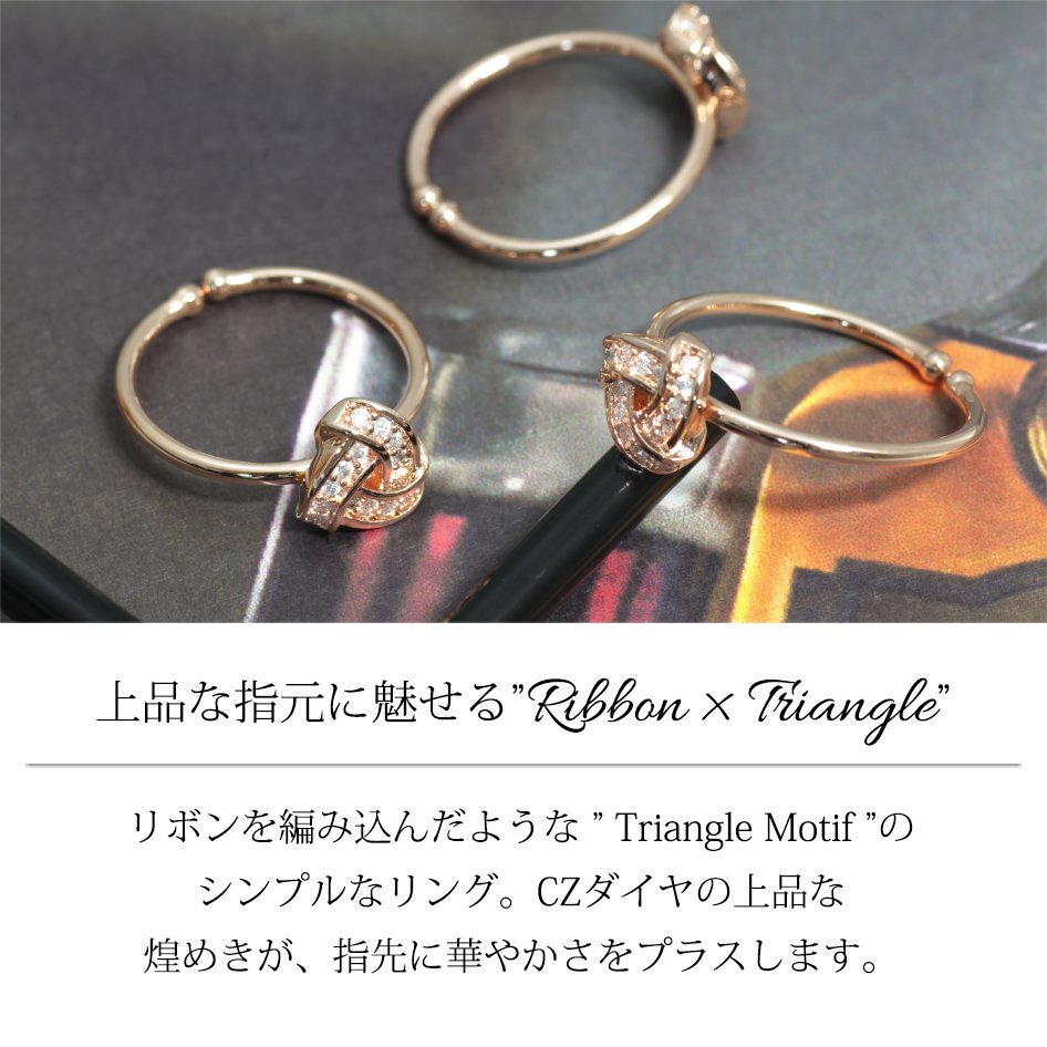 12号~16号 調整可能リング/新品 指輪 K18GP フリーサイズ トライアングル リボン りぼん 18金 ピンクゴールド レディース プレゼント 女性