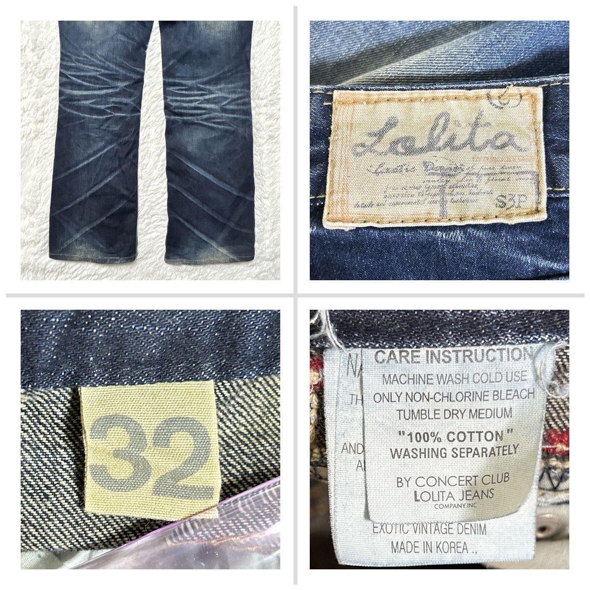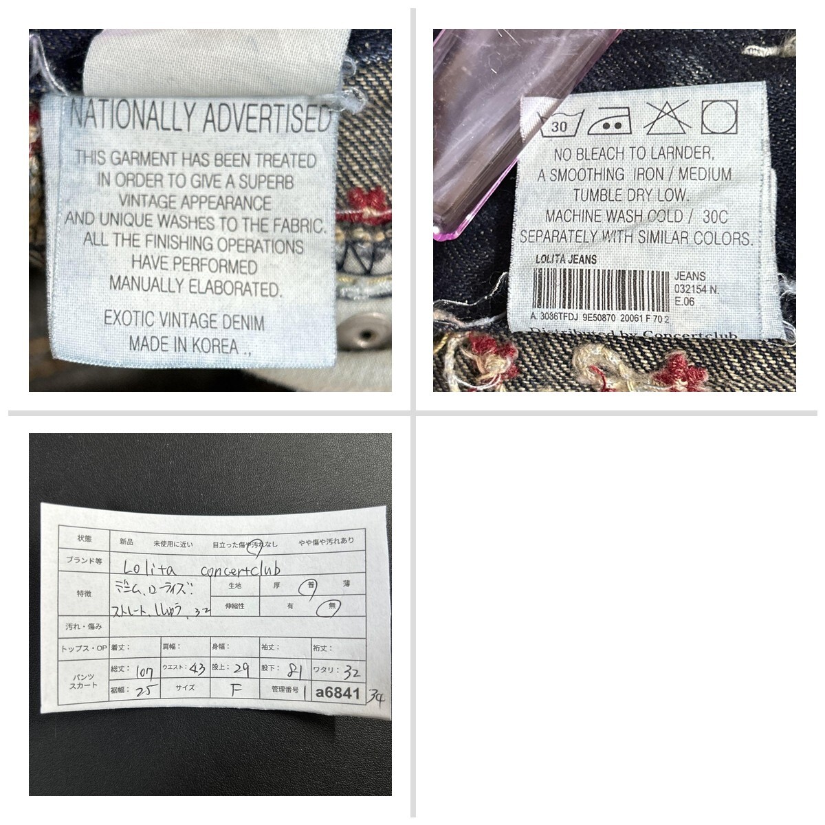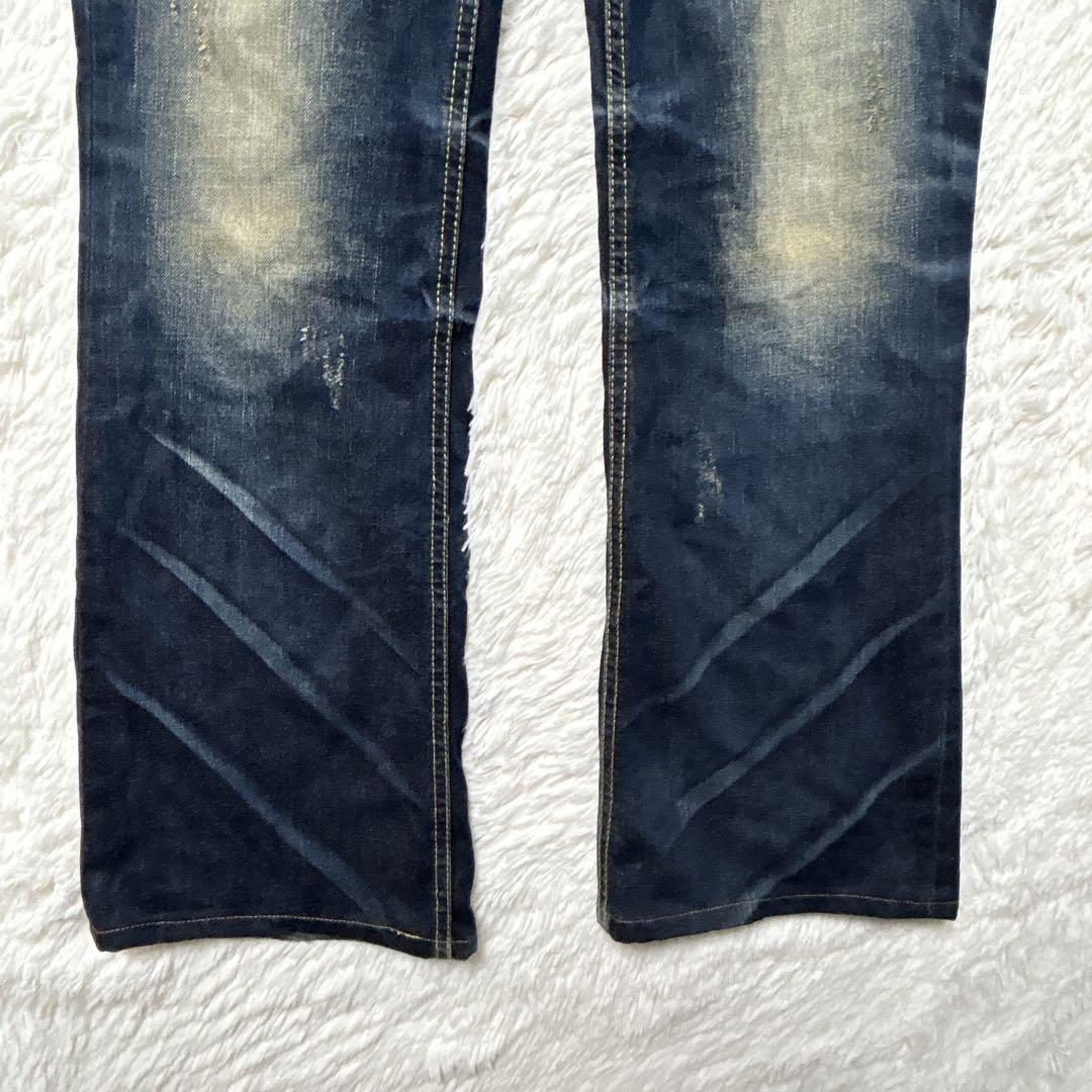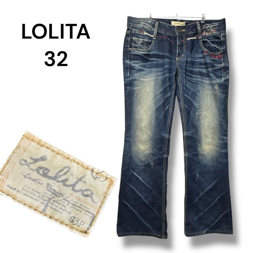 ロリータ デニム ローライズ 32 ストレート 花柄刺繍 F y2k 大きめ 0DE185