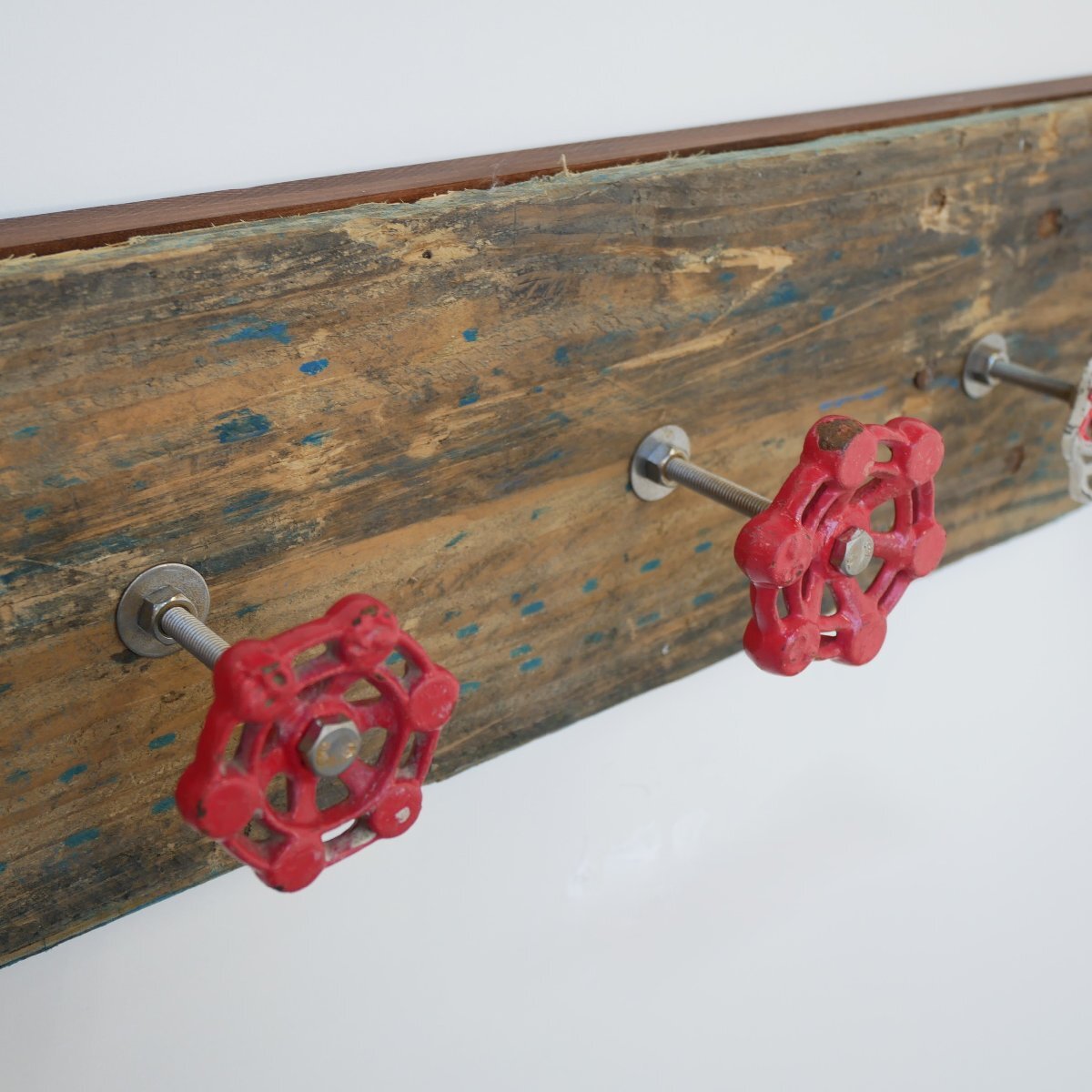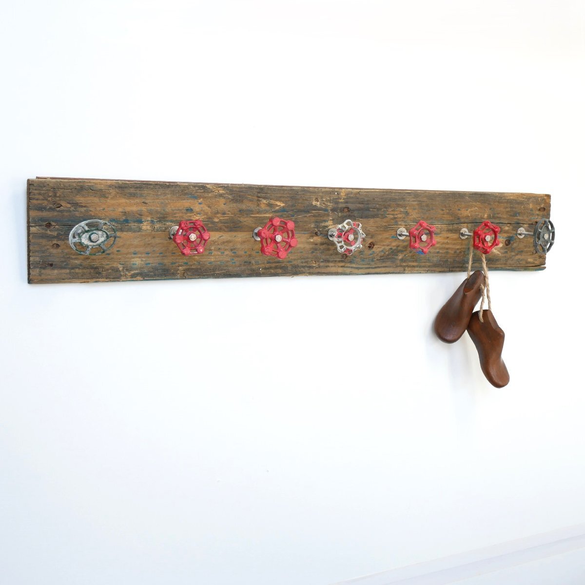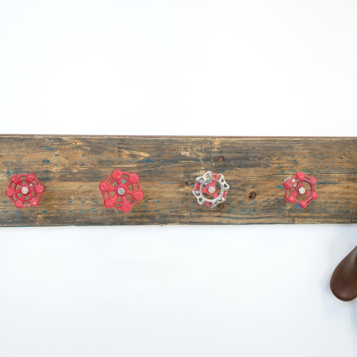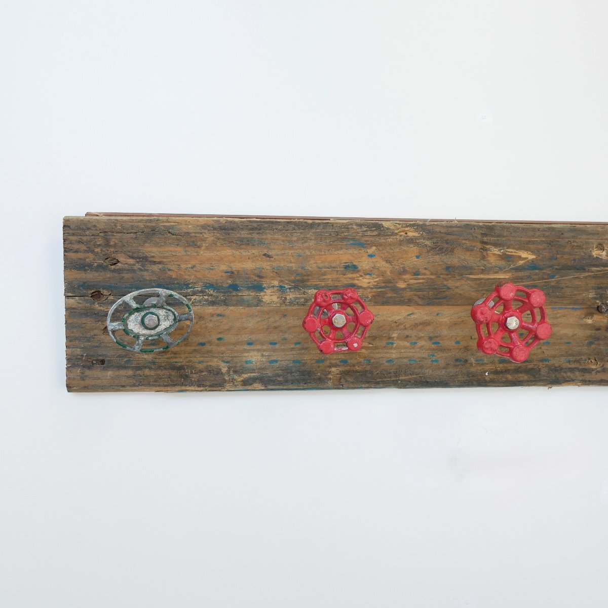 | 商品説明 explanation | 古材にバルブハンドルを取り付けて壁掛けフックにしたモノです。 フック7本はメタル製です。 ※靴の木型は対象外です。 お洒落なアイテムを、お店のディスプレイ小物などにいかがでしょうか。 |
