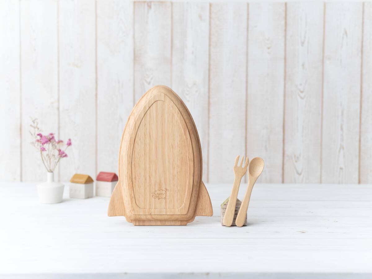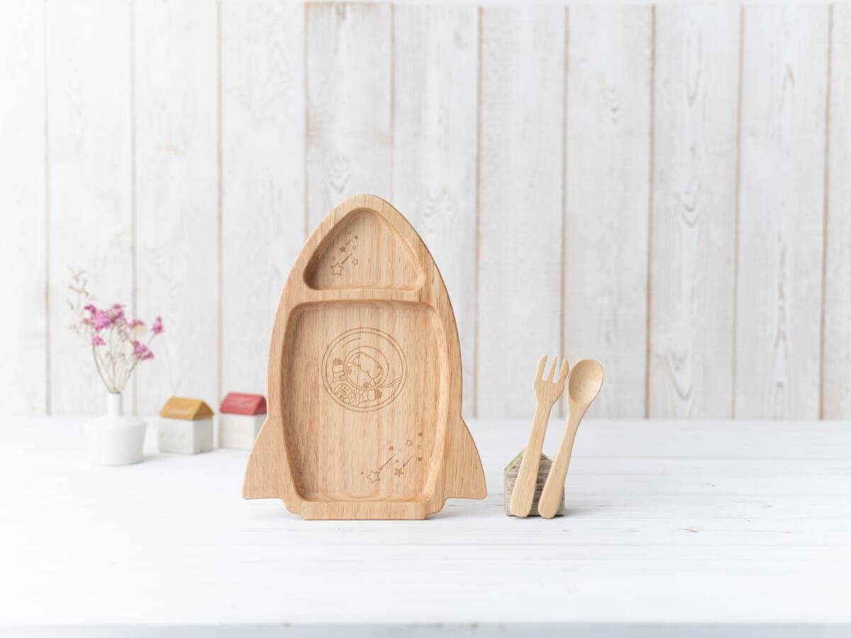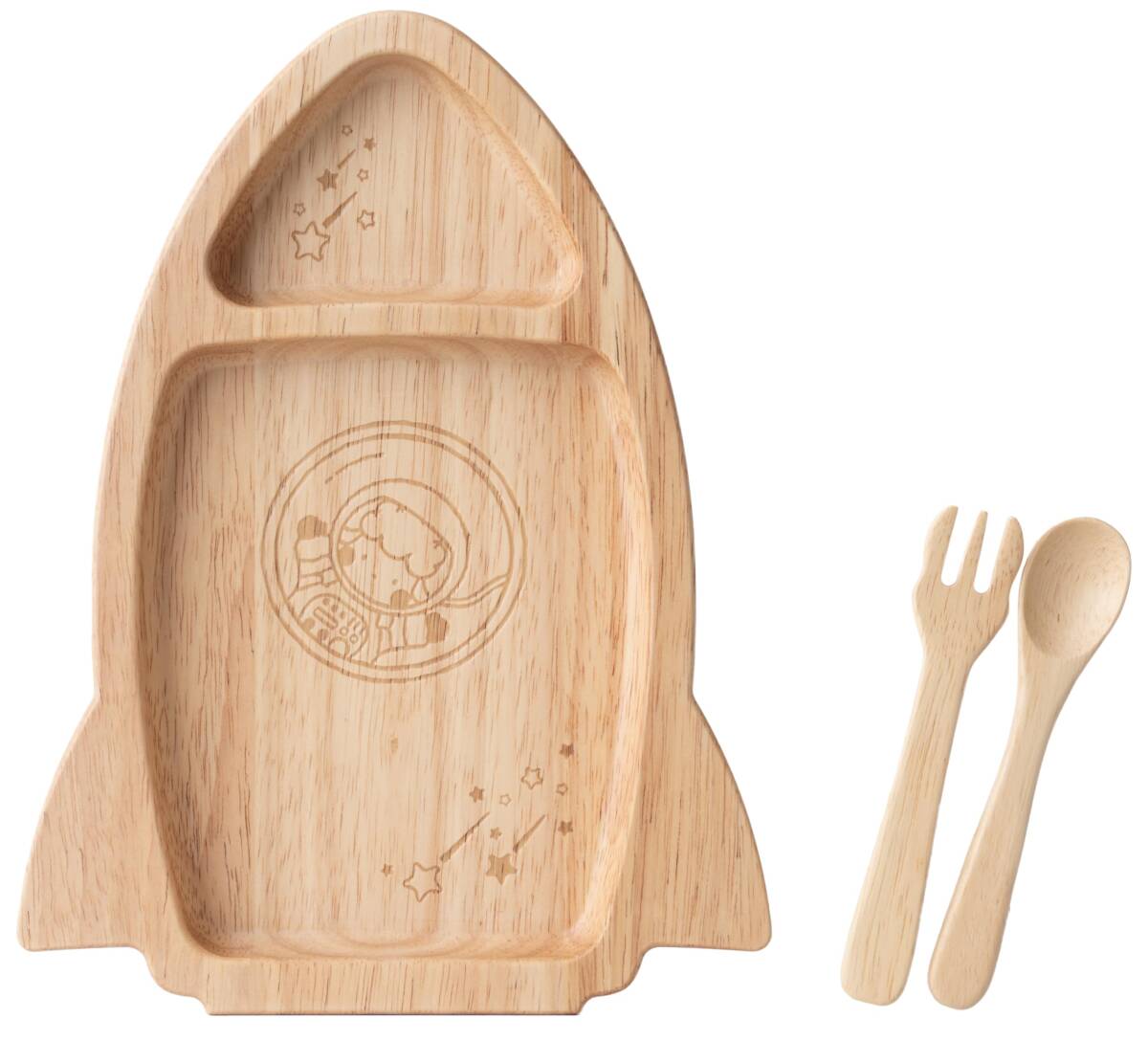 宇宙飛行士になったアグニーがプレートの真ん中に刻印された「ロケットプレート」は、離乳食後期からお使いいただける小さめサイズのランチプレートです。