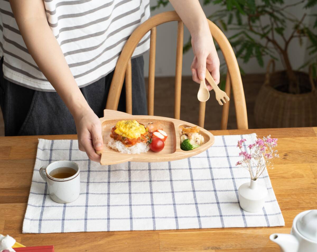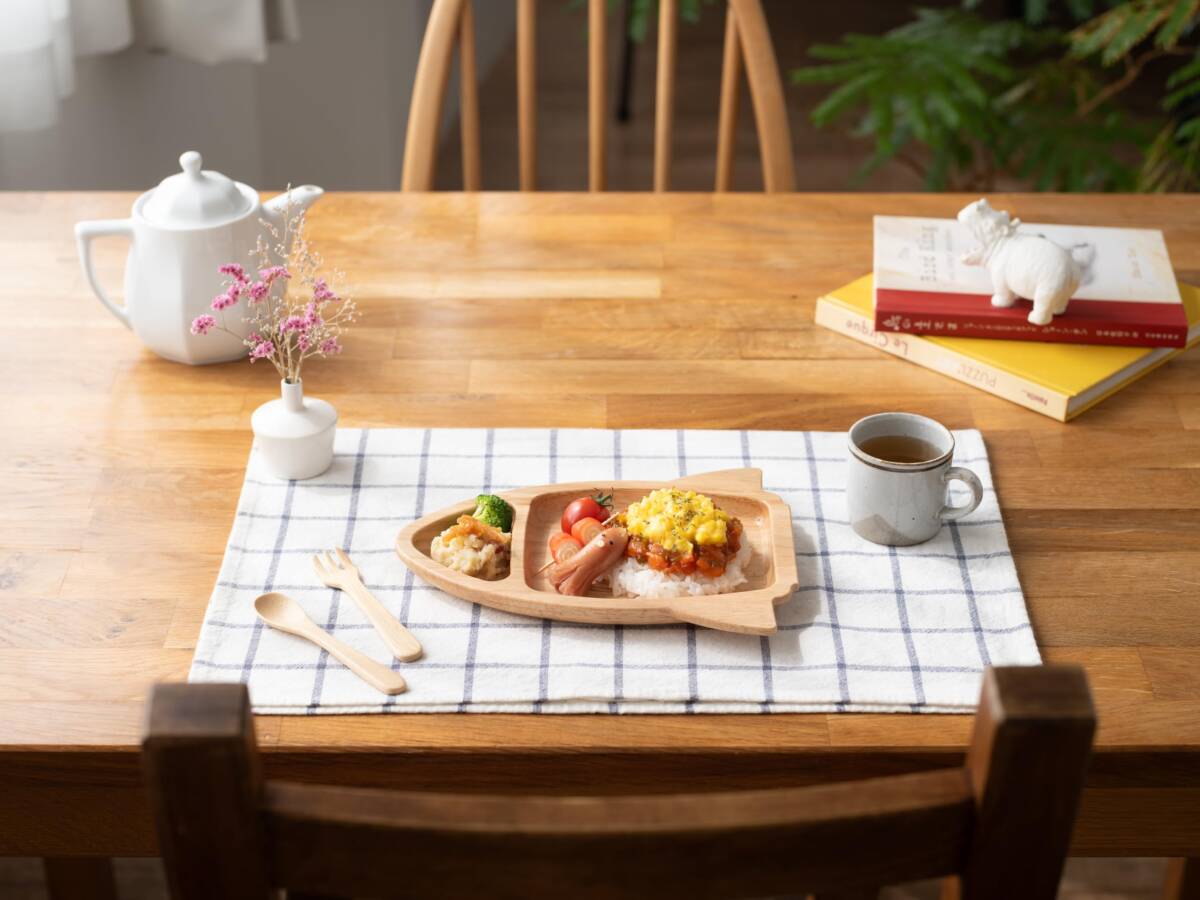 全ての縁が内側にカーブした『もぐもぐカーブ』になっているので、スプーンでおかずが掬いやすくなっています。