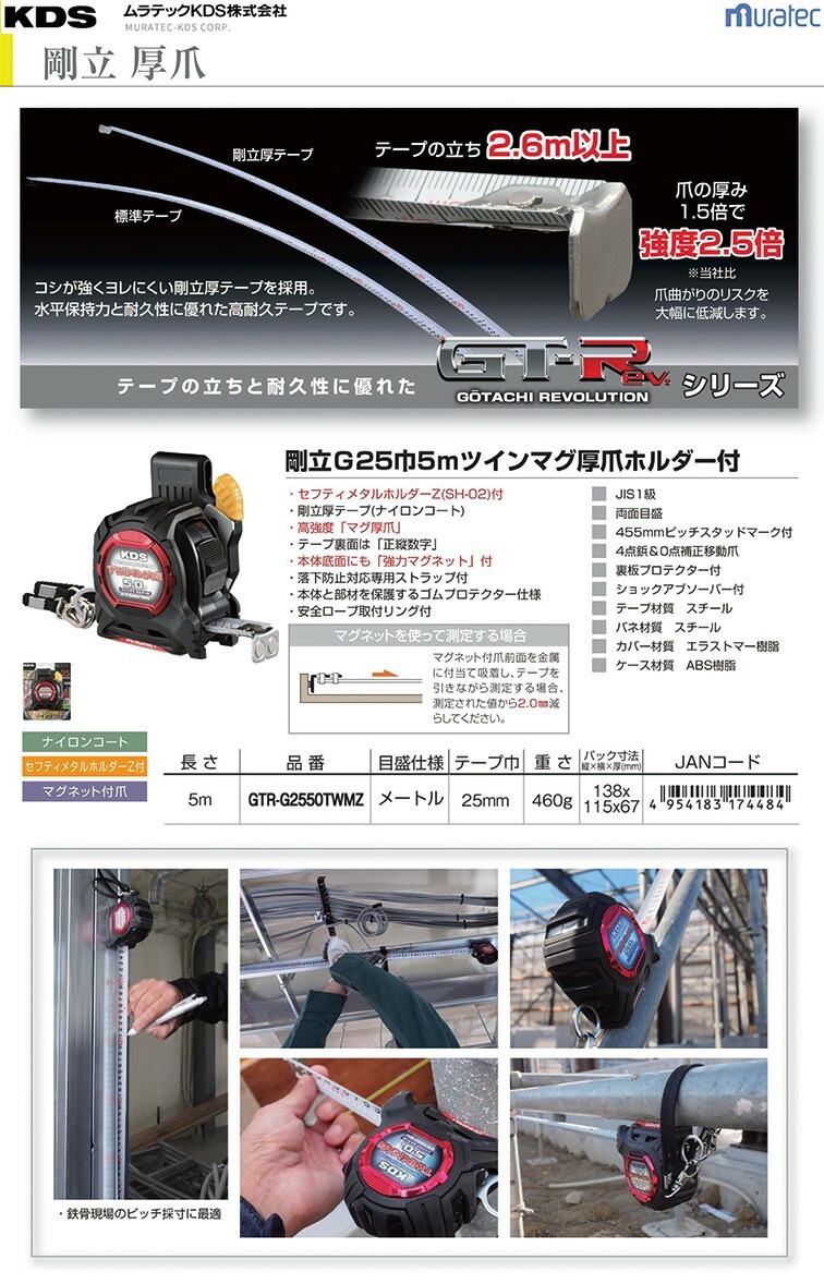 〈KDS〉コンベックス 剛立Gツインマグ厚爪ホルダー付 GTR-G2550TWMZ 【オススメ】 JAN:4954183174484