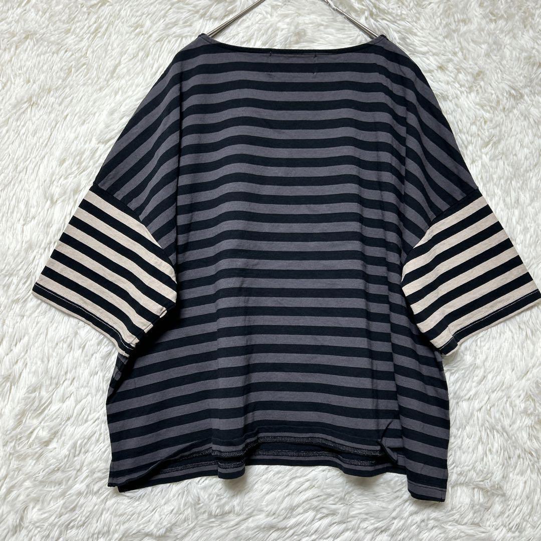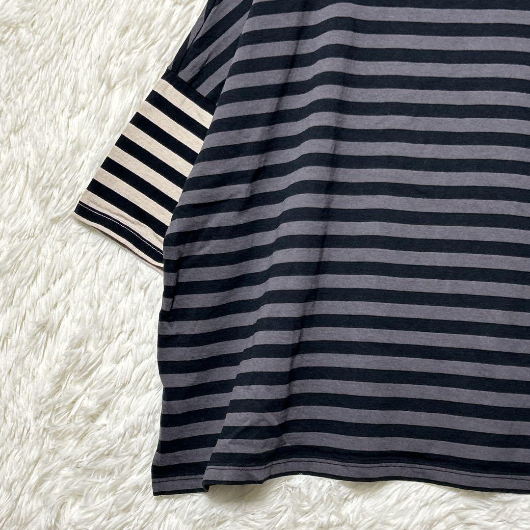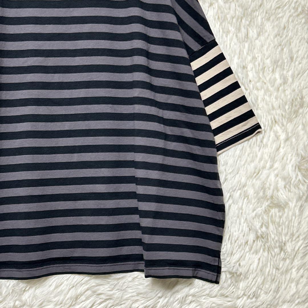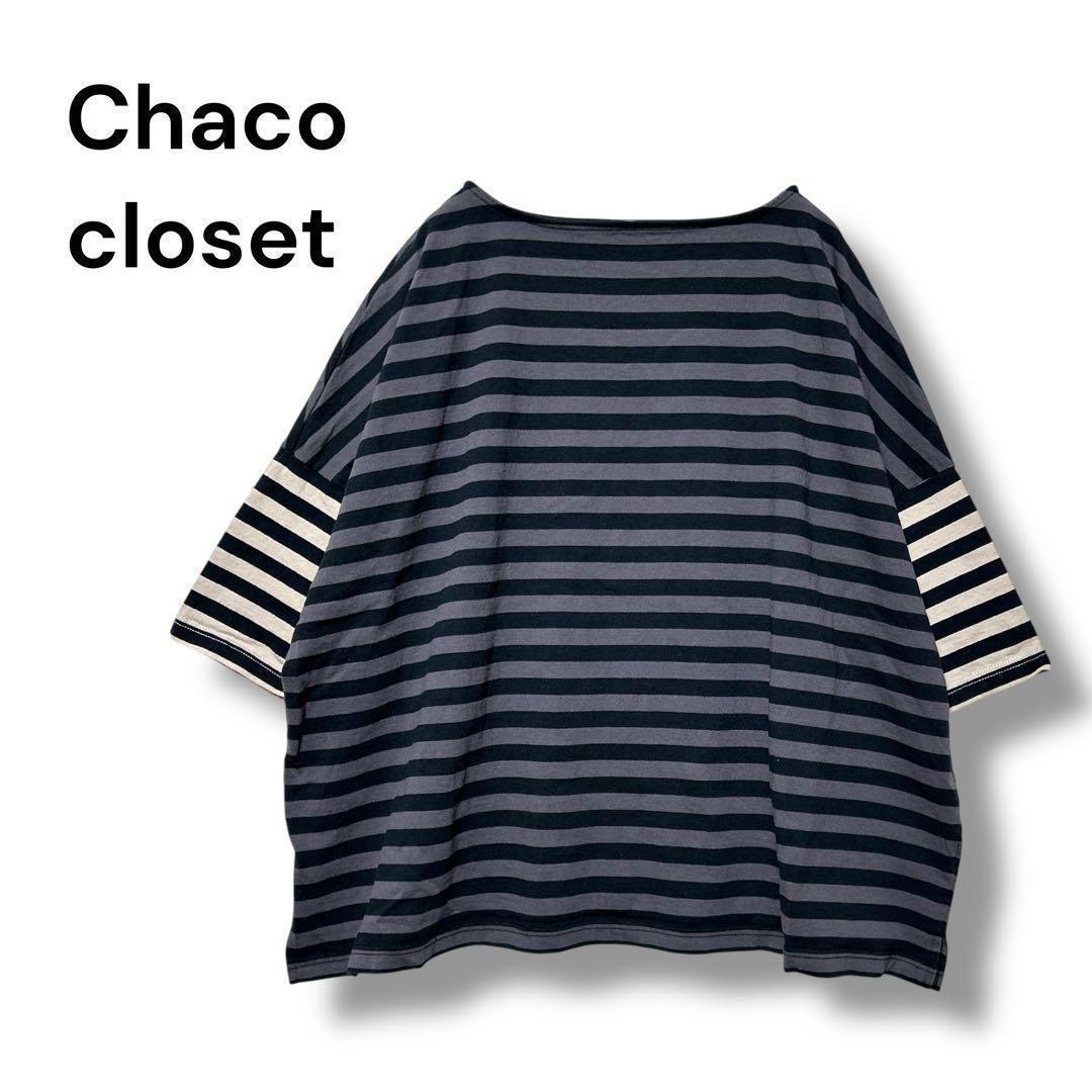 チャコクローゼット カットソー F 5分袖 ボーダー ネイビー グレー ベージュ 3EACDC