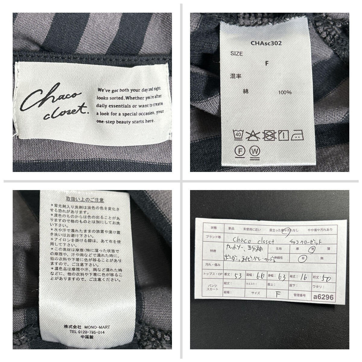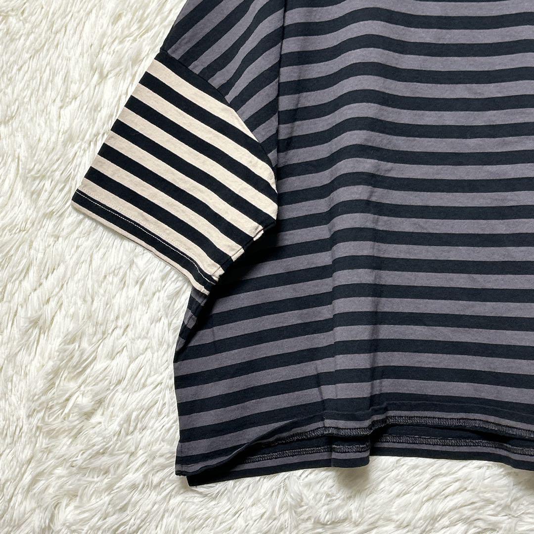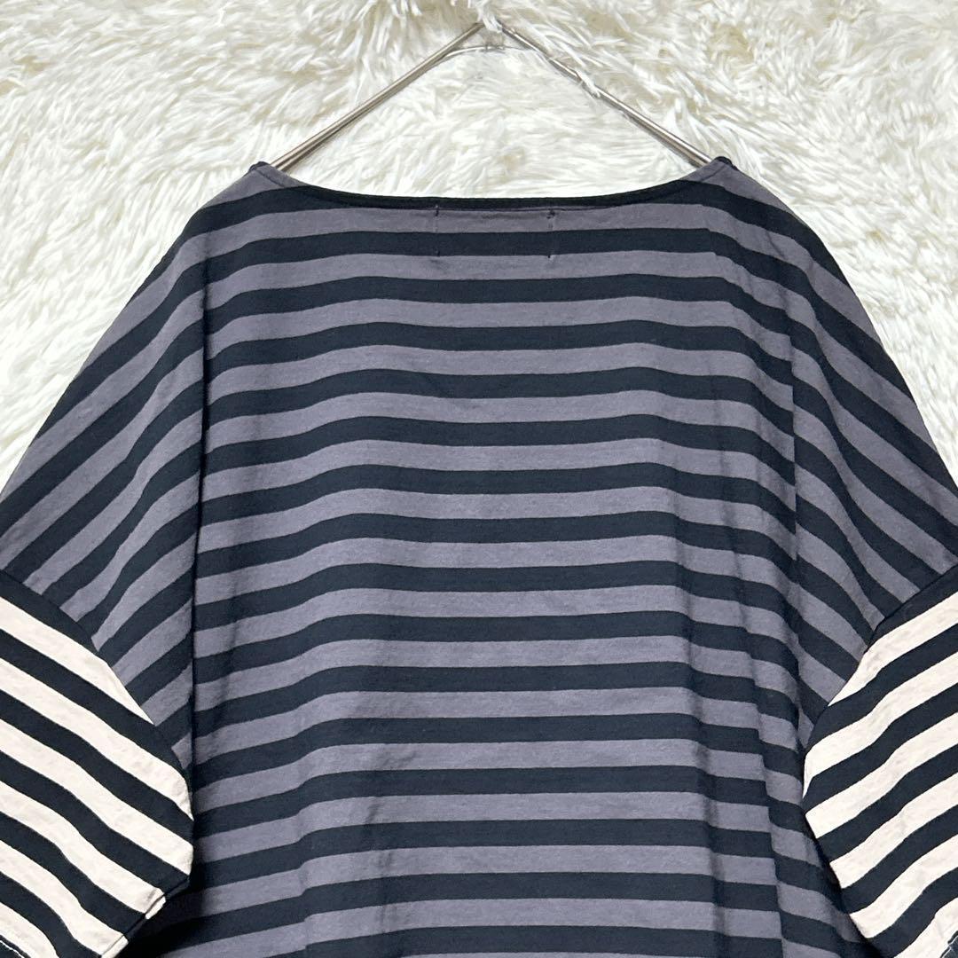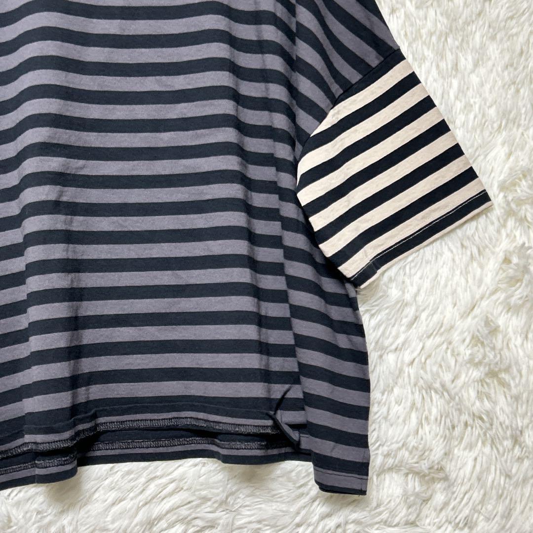 チャコクローゼット カットソー F 5分袖 ボーダー ネイビー グレー ベージュ 3EACDC