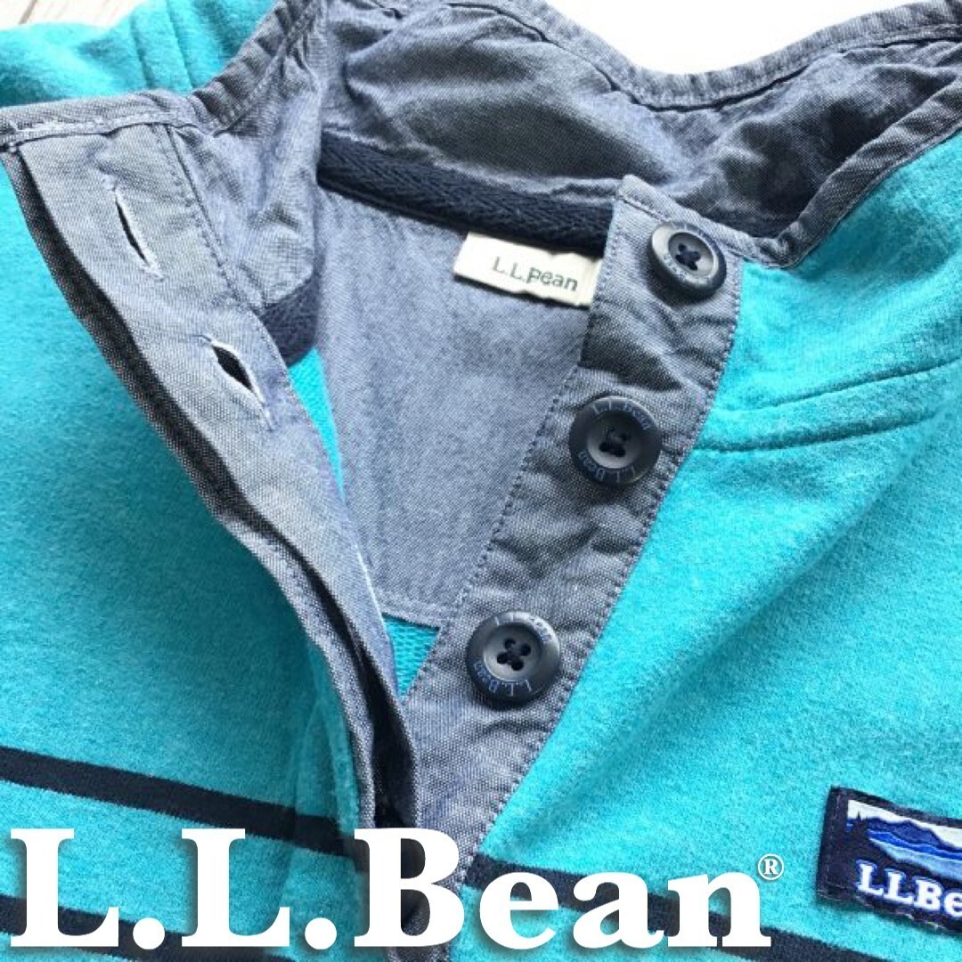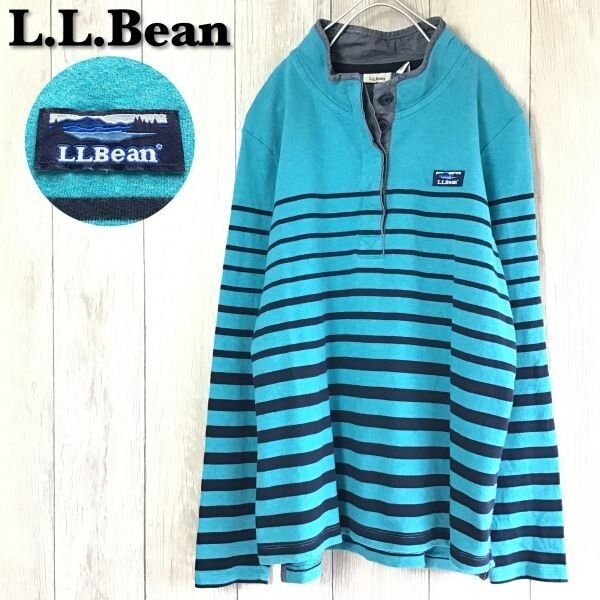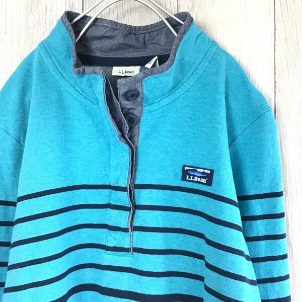 ★稀少★USA直輸入★正規品★[L.L.Bean エルエルビーン]カタディン ロゴ マルチボーダー プルオーバー トレーナー[メンズ L]青 80's K-527
