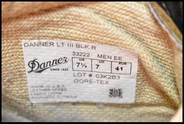 【7.5EE 良品 白タグ】Danner ダナーライト3 33222 ブラック 黒 ゴアテックス GORE-TEX トレッキング レースアップ ブーツ HOPESMORE