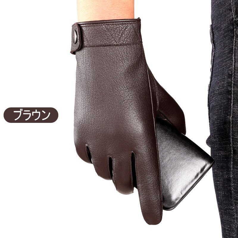 メンズ 男性用 本革 羊革 手袋 スマホ対応 運転用手袋 皮 冬 防寒 おしゃれ 大きい 防風 通勤 通学 暖かい 暖かい 柔らかい ☆ブラック