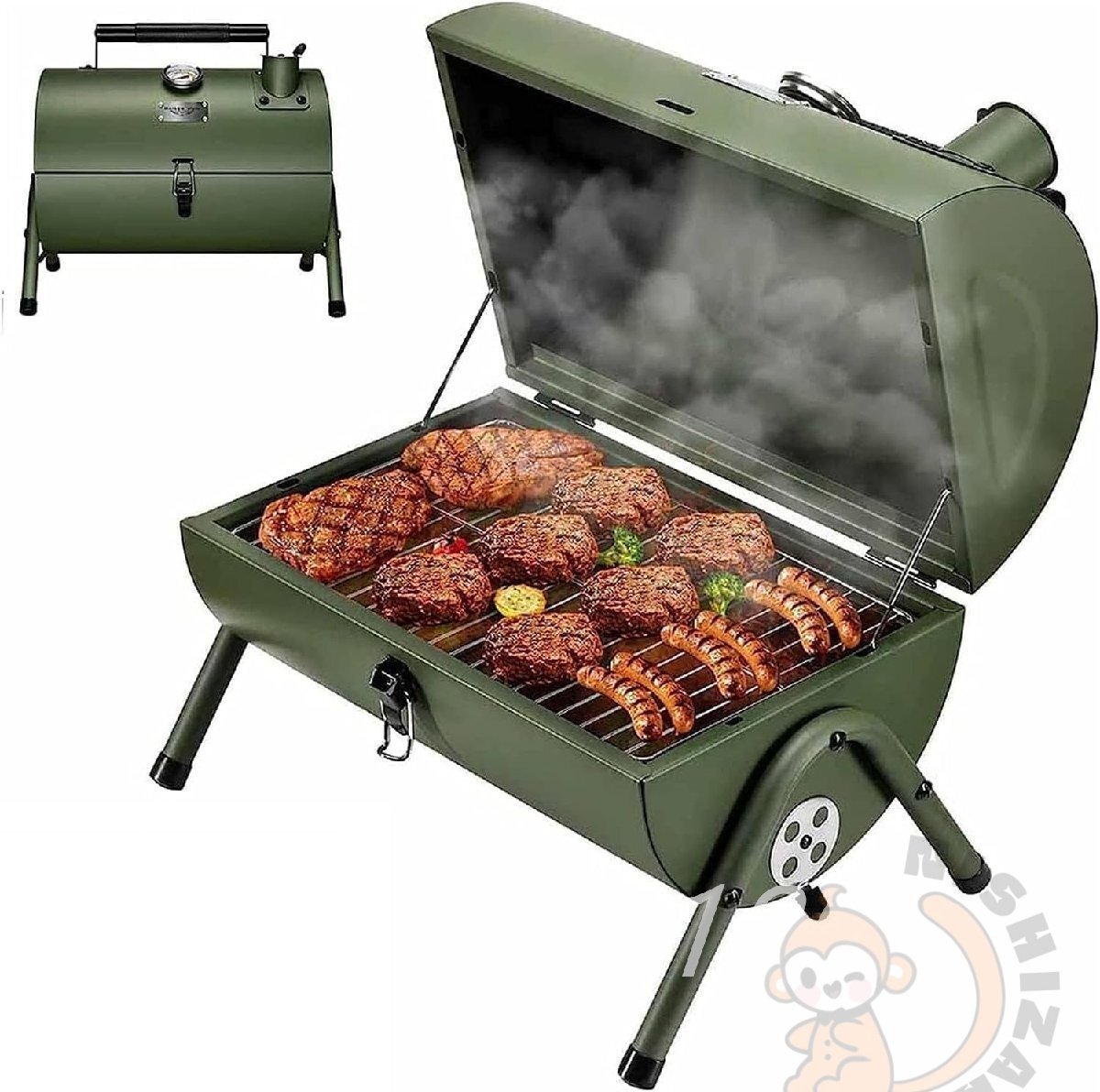 バーベキュー コンロ 蓋付き 卓上コンロ 持ち運び 温度計付き 軽量 携帯用 炭 バーベキューグリル キャンプ用品 チャコールグリル グリーン