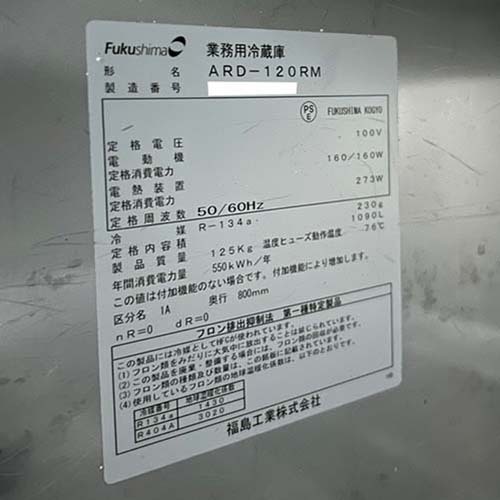 【業界最長1年保証】縦型冷蔵庫 フクシマガリレイ(福島工業) ARD-120RM 業務用 中古/送料別途見積