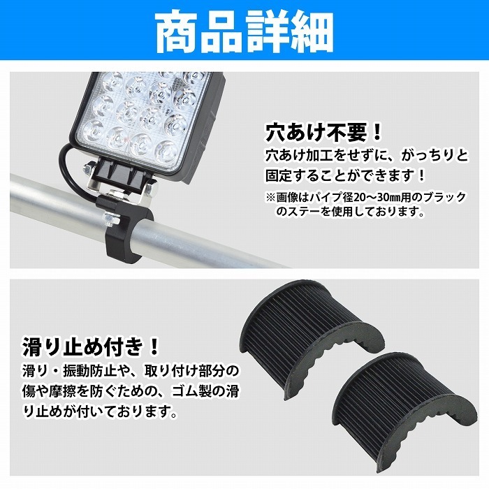 『32mm-50mm』丸 パイプ ステー バイク 船 ボート ヨット 車 作業灯 ワークライト LED 固定 取付け ブラケット アルミ製