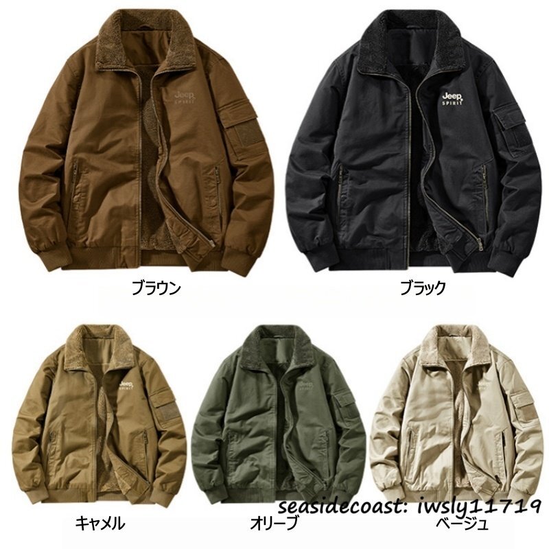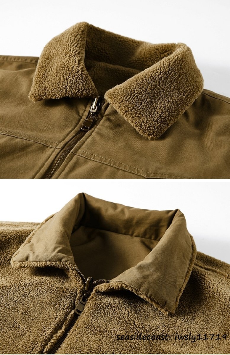 新作*ジャケット 秋冬 ブルゾン 裏フリース 防寒 厚手 防風 暖かい ムートンコート両面着 リバーシブル 作業着 ジャンパー キャメル L