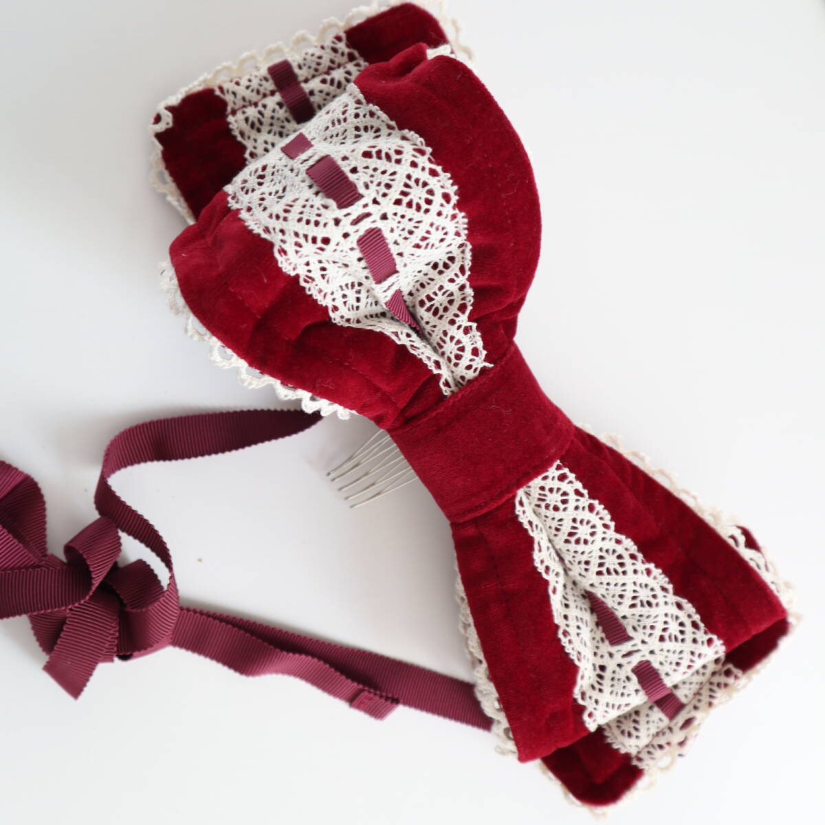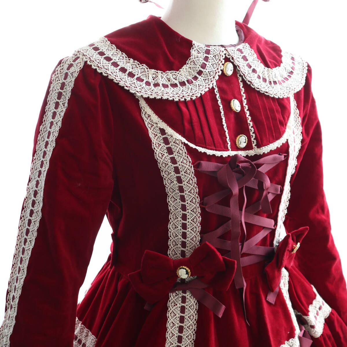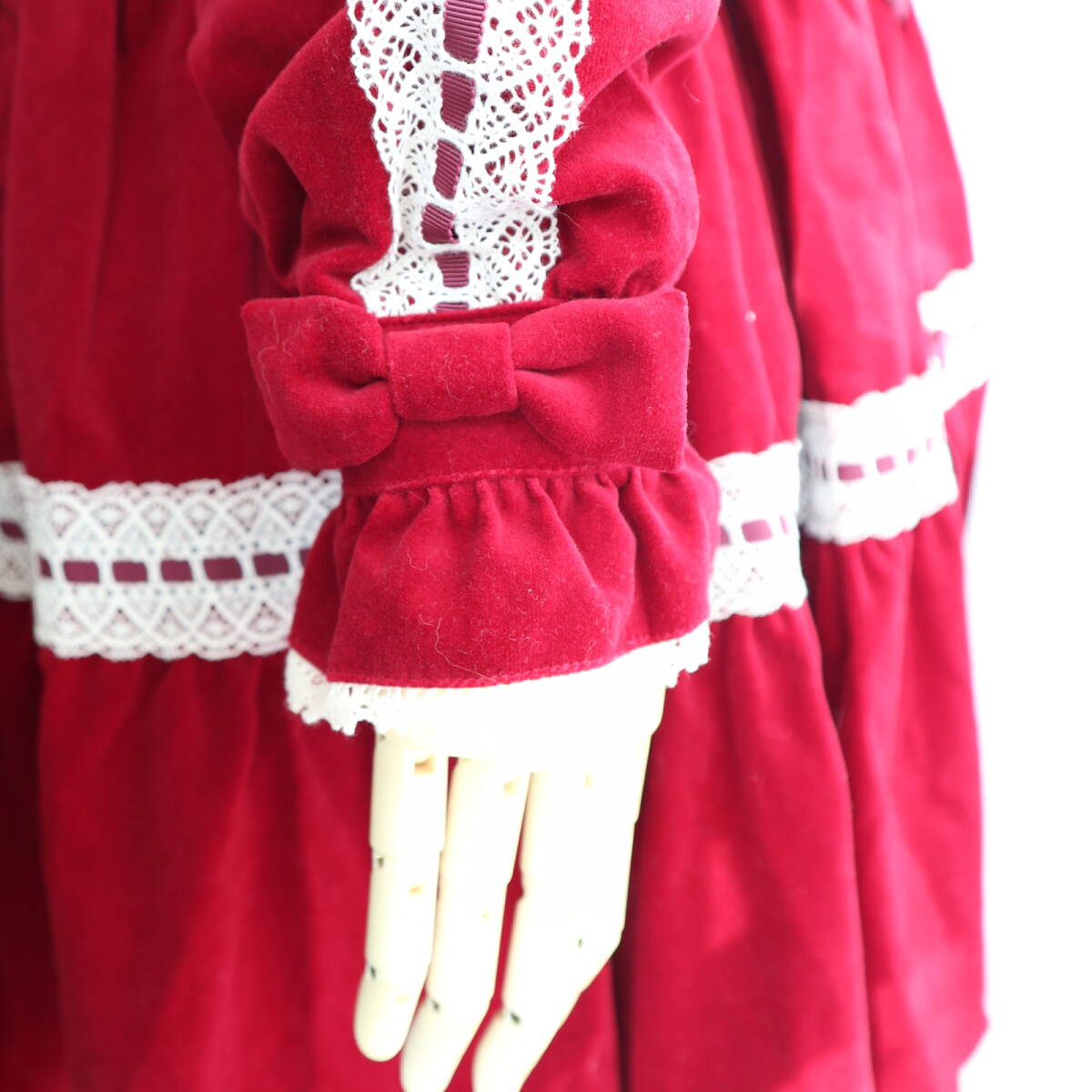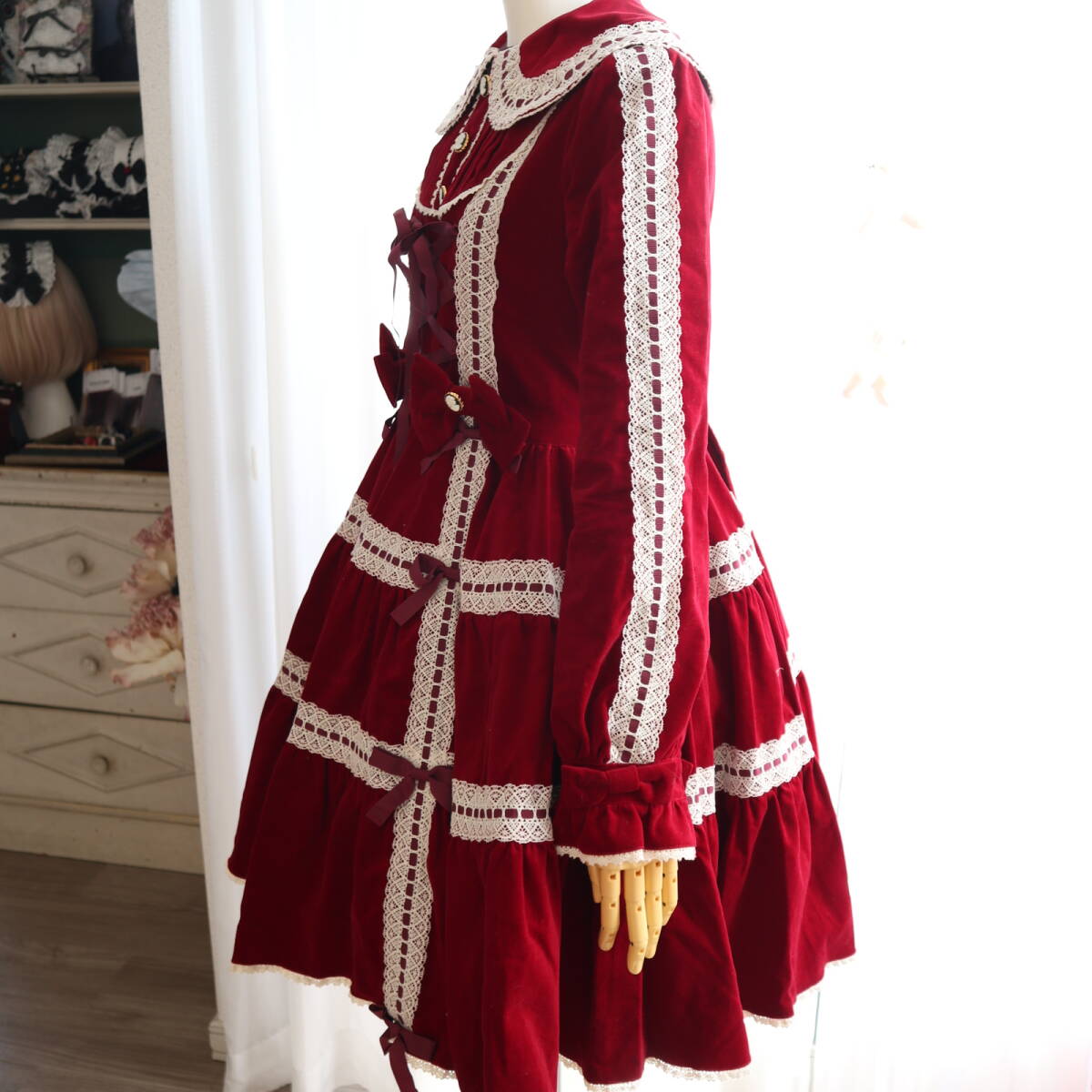 metamorphose temps de fille◆別珍 ティアード ワンピース リボンヘッドドレス セット/ロリィタ ゴスロリ メタモルフォーゼ 赤 ボルドー