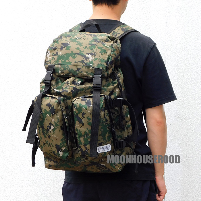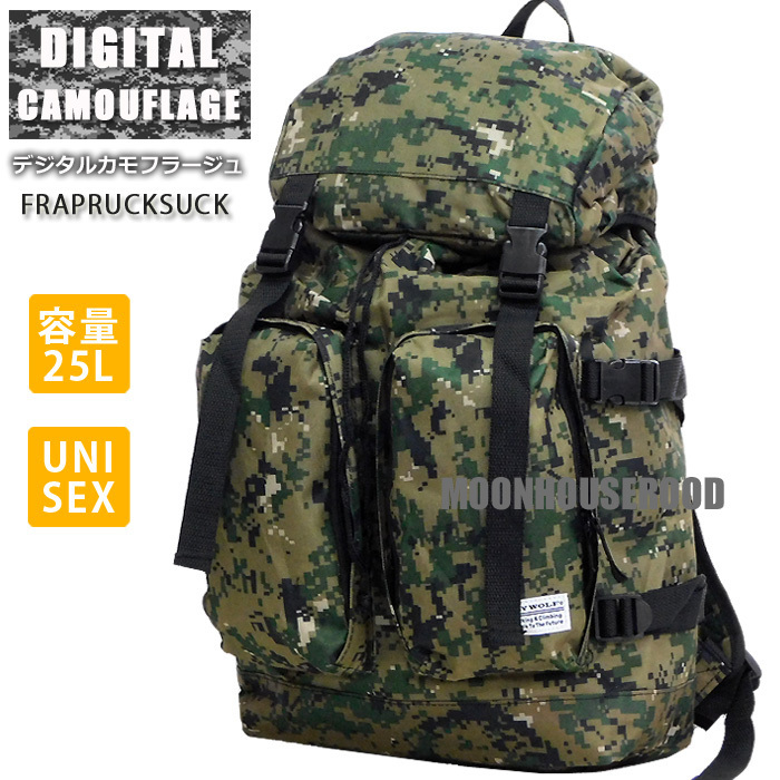 送料無料 ミリタリー柄 大容量 リュック メンズ レディース フラップ リュックサック デジタル カモフラージュ デジカモ 迷彩柄グリーン□
