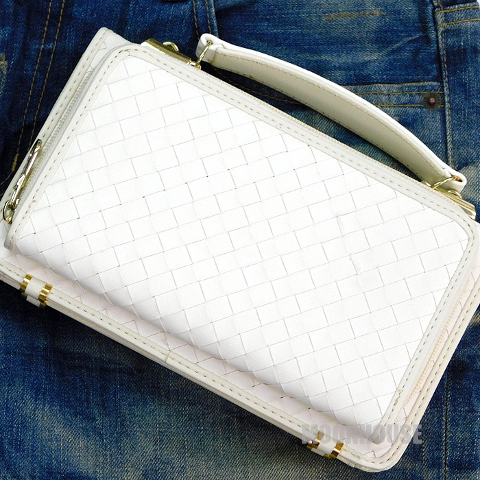 送料無料 訳あり 特価 イントレチャート 編み込み セカンドバッグ メンズ オラオラ系 チョイ悪系 クラッチバッグ ハンドバッグ ホワイト□