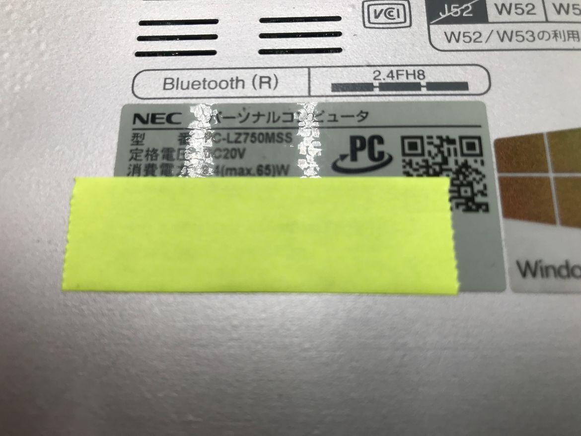 快適スペック!NEC/ノート/SSD 256GB/第3世代Core i7/メモリ4GB/WEBカメラ有/OS無