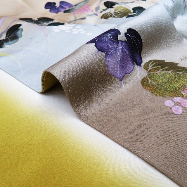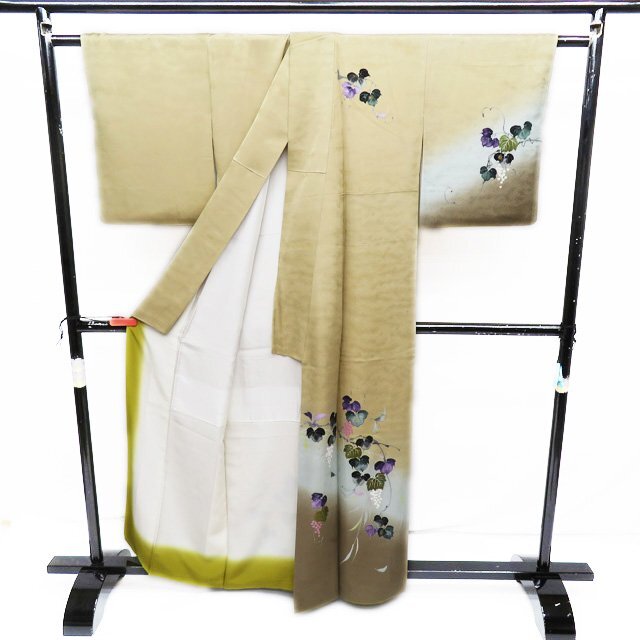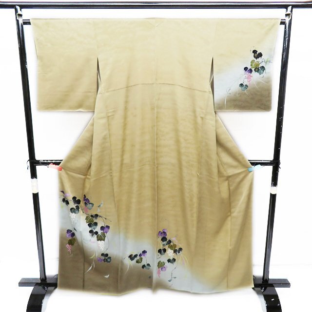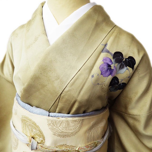丈160cm(+22) 裄64cm(+6.5) 袖丈49cm(+2) 前幅24cm 後幅29.5cm ※サイズのお直し、承ります。 (身丈のみ、身幅のみのお直しは承っておりません) ※身丈は肩から測っております。 ※()内はおおよそのお直しいただける長さです。胴裏の長さ等によって()内の長さ通りお直しできない場合があります。 単位:cm 素材 正絹 商品ランク B ●着用時期 10月~5月(+-2週間) ●着用シーン 披露宴、パーティー、お出掛け、式典など ●お色 枯色 使用感の少ない、美しいお品物です。 写真に写っている着物のみの販売で、帯等の付属品はついておりません。 一部商品は実店舗・他サイトでも並行して販売しておりますので売り切れの際はご了承ください。 その他多数販売中 ho- | ||||||