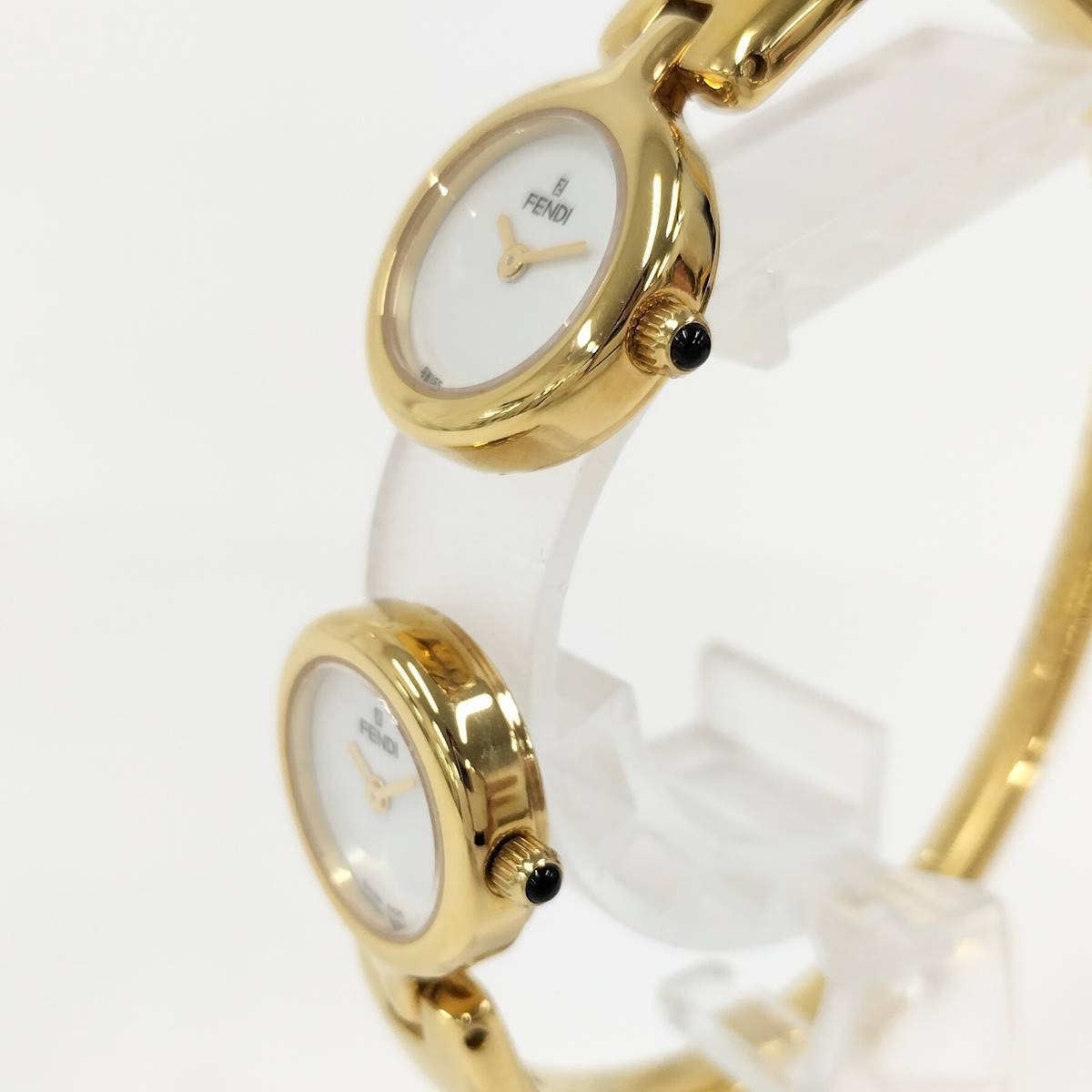 | ◆商品情報 | ・サイズ:直径約 18(mm)【リューズ部分を除く】 ・腕周り:最大約 16(cm) ・素材/機能:SS/GP+ホワイトシェル文字盤 ・ムーブメント:クオーツ |