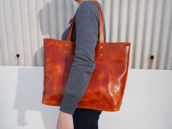 天然タンニン鞣しのプルアップレザーです。物理的な作業によってシワを強調させている特徴な革です。使い込んでいくうちにツヤ・味がでてきます。私たちが知っているかぎりこの革を使用しているところは、数少ないです。