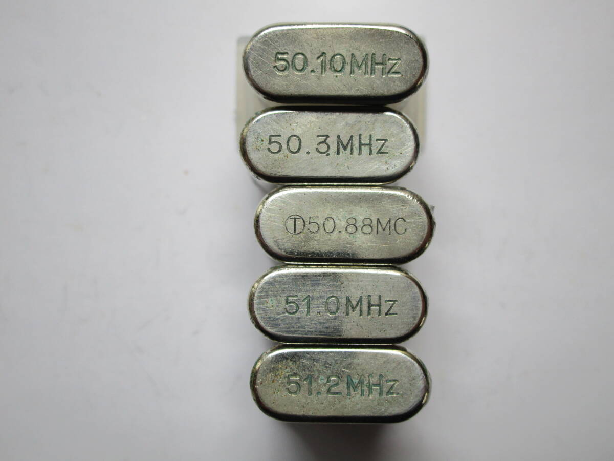 写真にてご判断願います。50.10、50.3、50.88、51.0、51.2MHzの5チャンネルで、基本波は2MHz帯。24逓倍にて使用。すべて発振確認済みです。