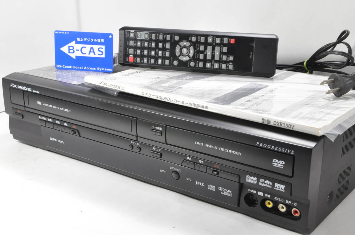 | 第6回★年末年始☆大放出祭★ 【商品案内】 ★商品型番:DXR150V ★出品前チェック:コピーガードのかかってないものを前提としています。 地デジ受信○ VHSテープ再生○ DVD再生○ VHS→DVDダビング○(手持ちのDVD-Rにて検証済み) リモコン動作○(再生、停止など簡単な確認) ★付属品:リモコン、説明書、B-CASカード ★当方の出品物は全て電源コード付いてますのでご安心ください。 ★全体評価(あくまで主観によるもの):人気の地デジ対応でダビング可能な一体型ビデオデッキです。外観は非常に綺麗な状態と評価、デッキフェイスにおいても非常に綺麗な状態と評価。リモコンも綺麗な状態です。VHS-DVD双方向へのダビングが可能なモデルとなっており、広範囲な使用目的に対応しております。このモデルはワンタッチボタンで簡単にダビングが出来るのでVHSからDVDにダビングしたい方にもオススメです。説明書付きの貴重なセット。操作に自信のある方にオススメです。動作確認中の写真も掲載いたします。操作においてのサポートなどはしていませんので落札者側で対応お願いいたします。 ★タイトルの状態評価はデッキフェイスを主体としており、天板やデッキ内部は加味しておりません。 ★到着後、古いテープをいきなり再生すると(テープが古く劣化していたりカビ、べたつきがあるテープ)ヘッドが正常に回らずテープが内部で絡むことがありますのでご承知おきください。 【入札する方へ】 ●評価が新規または5以下の方→落札後24時間以内のご連絡と3日以内のご入金を必須。 ●上記期限を過ぎた場合は削除になります。 ●入札後の取り消し依頼には対応していません。 ●落札後、円滑な取引がない場合は削除対象になります。 【返品返金について 必ずお読みください】 このオークションはノークレ、ノーリタではなく下記のとおりの対応をしています。★全額返金ではないですが全く返金されないよりはリスクが軽い★と理解できる方のみご入札ください。 短時間かつ簡単な確認による中古品の個人出品ですので輸送状況及び操作の上での不具合があるかもしれません。保証は一切ございません。更に到着してからの再生、録画等(テープ絡まりや映像の乱れ)についても責任が持てませんので明記しておきます。また入札者様はその明記されてるリスクに同意されて入札したこととなります。 ★返金・返品に関する重要事項★ 【商品記載と異なる不具合の場合】※電源入らない、再生できない 1.商品到着後3日以内のご連絡 2.商品を落札者様から送料ご負担の上、返送。(返品時の送料は落札者様) 3.到着後ご指定の口座へ商品落札金額から20%を差し引いた金額(全額返金ではありません)+「初回送料」を返金(つまり発送時の送料は当方負担)いたします。 出品には動作確認を行い十分気をつけていますが機械という特性上、リスクがあることにご了承願います。 【再生確認は確認できたが返品したい場合】※録画、ダビングができない 1.商品到着後3日以内のご連絡 2.商品を落札者様から送料ご負担の上、返送。 3.到着後ご指定の口座へ商品落札金額から20%を差し引いた金額(全額返金ではありません)を返金。(つまり往復の送料は落札者負担になります) 上記以外は受け付けませんので同意できない場合は他のオークションへご参加くださいませ。 【評価について】 ●当方からは評価はいれていません。評価をしてくださった方に「同じ」評価をお返しいたします。 ●いきなりの悪い評価を付けられた場合は、当方も同じ評価を入れます。 ●いきなりの悪い評価を付けられた場合は、返品返金にも応じません。 ★★★★ビデオデッキを落札された方へ★★★★ ■冬季は「つゆつき」という現象が発生しやすい時期です。 寒い外から暖かい室内へと運ばれた商品は、温度差や湿度差によって機械に「つゆつき」(機械が一時的に湿気を帯びて曇る)が発生する場合が多くあります。つゆつきが発生しているときに作動させると、テープの巻きこみや機器の誤作動が起こりやすくなります。商品お受け取り後は、半日程度室温に慣らしてから作動するようお願いをいたします。当方はジャンク品を動作品として出品することは絶対にありません。 また、誤作動が万が一、発生した場合にはいきなりデッキの故障と思わないで電源コンセントを抜いてしばらく放置すると正常に動作する場合もありますのでご案内します。 ★★★★DVD付デッキを落札された方へ★★★★ ■稀にDVDトレイが開かない場合について 当方で動作確認時に正常にトレーが開閉していても、到着後にトレーが開かない場合が稀にあります。この原因はトレーを開閉する部分にゴムベルトが使用されていて、それが空回りして開かない場合や劣化していて開かない場合、冬季には気温や湿度で軟性がなくなりうまく作動しないなど要因がいくつかあります。万が一この症状に遭遇してしまった場合は慌てずにトレーフタをあけて歯車を回してみたりしてみてください