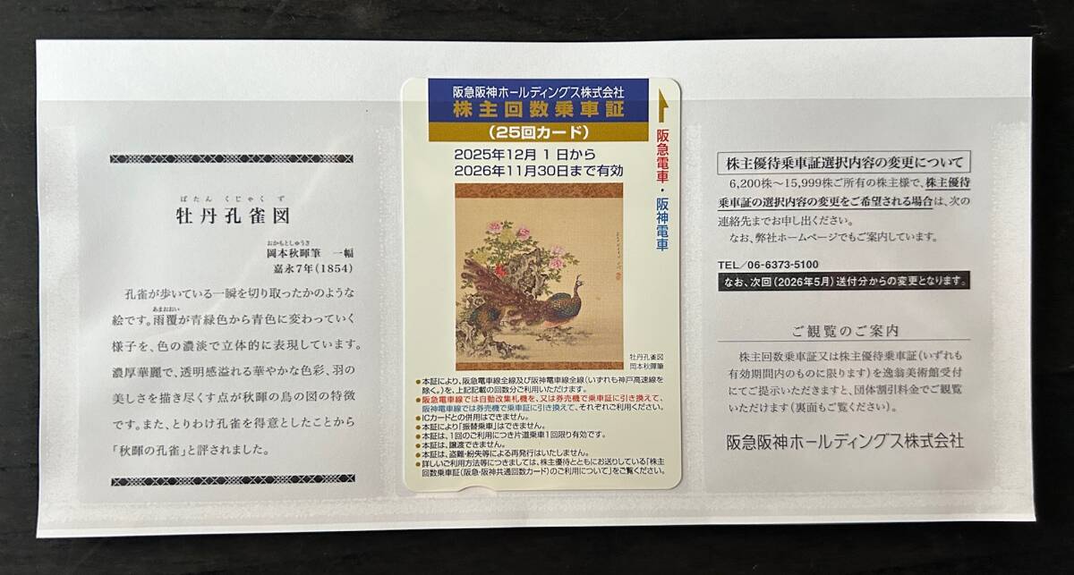 阪急阪神ホールディングス 株主回数乗車証(25回カード)1枚 ◆有効期限:2026年11月30日