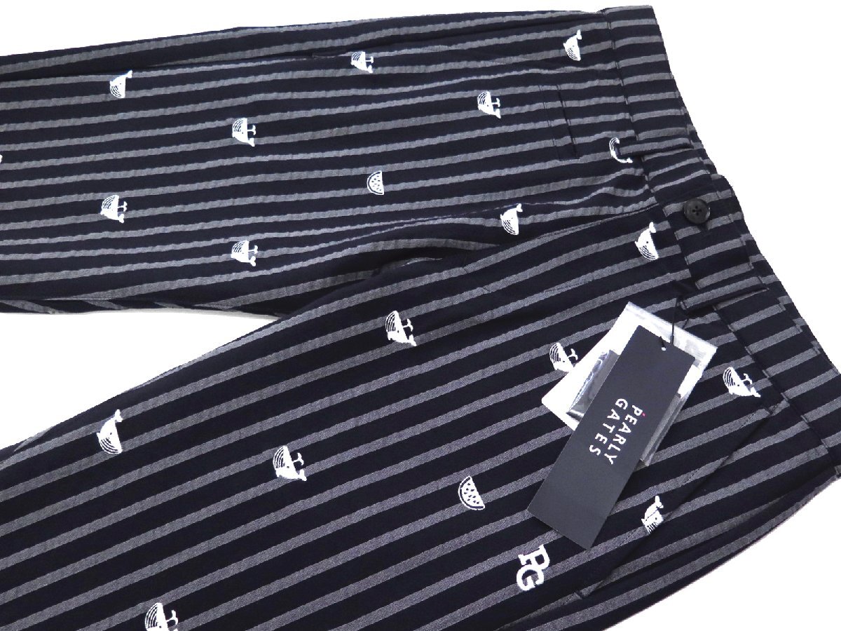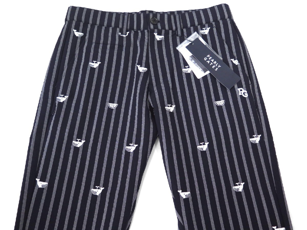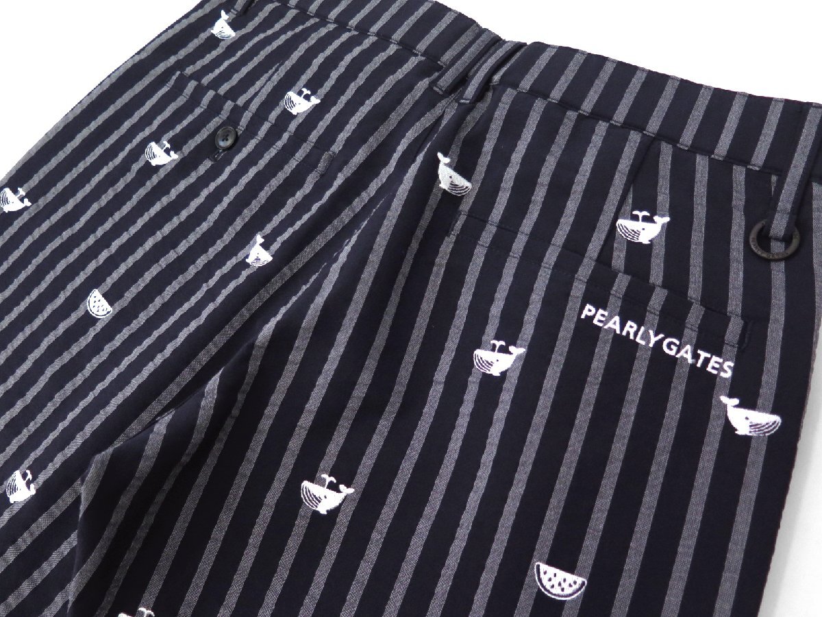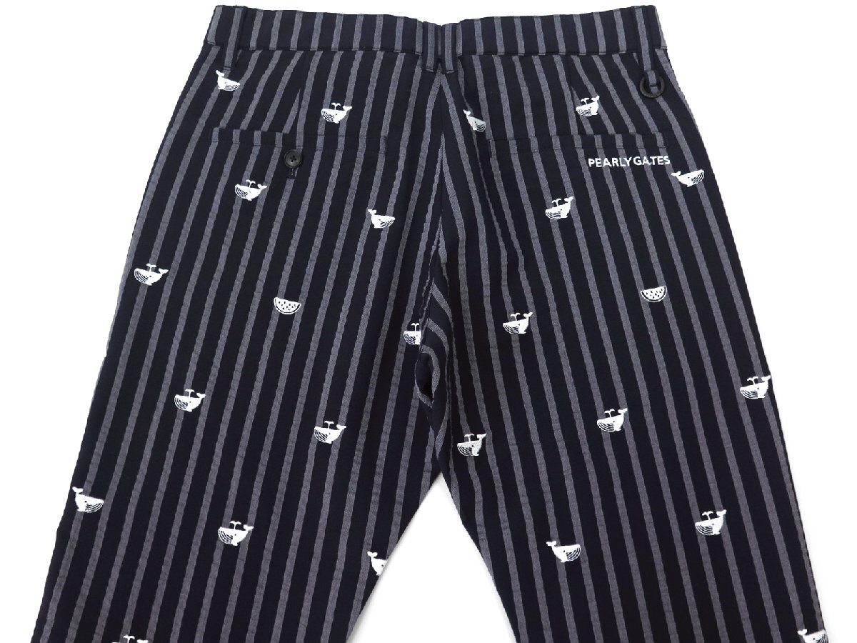 商品名● PEARLY GATES パーリーゲイツ ●新品 【クジラ&スイカ刺繍】 サッカー生地 ストレッチパンツ 濃紺/M 定価31900円