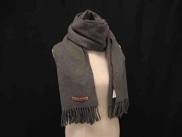 1円 ■極美品■ Acne studios アクネステュディオス ウール100% フリンジ マフラー ストール 防寒具 レディース メンズ グレー系 FN4866